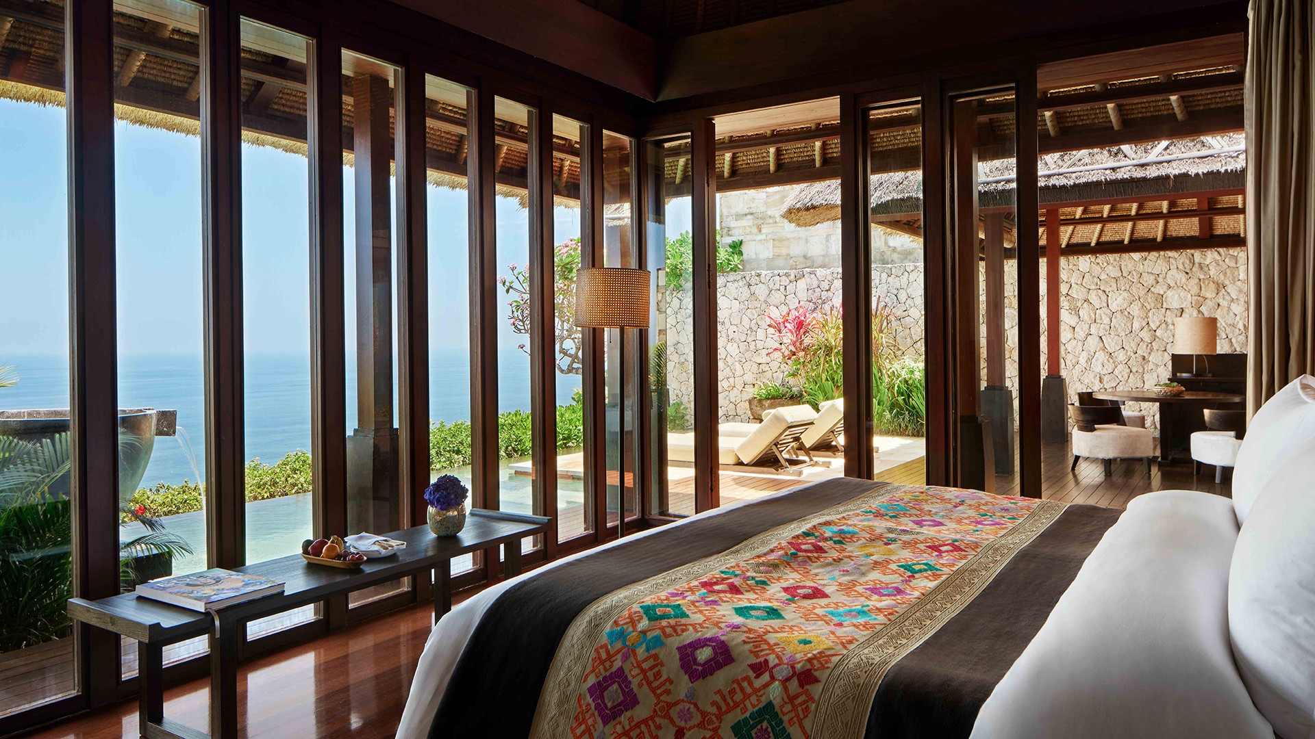 Bvlgari Resort Bali is perched on a clifftop on Bali’s southern coast, surrounded by lush tropical gardens and cascading cliffs. Just 15 minutes from the heart of Uluwatu, it’s perfectly located to discover the iconic Uluwatu Temple and the white-sand beaches of the Bukit Peninsula. The hotel is located approximately a one-hour drive from I Gusti Ngurah Rai International Airport (DPS). Return airport transfers are included in select packages only, please see the Fine Print for details.