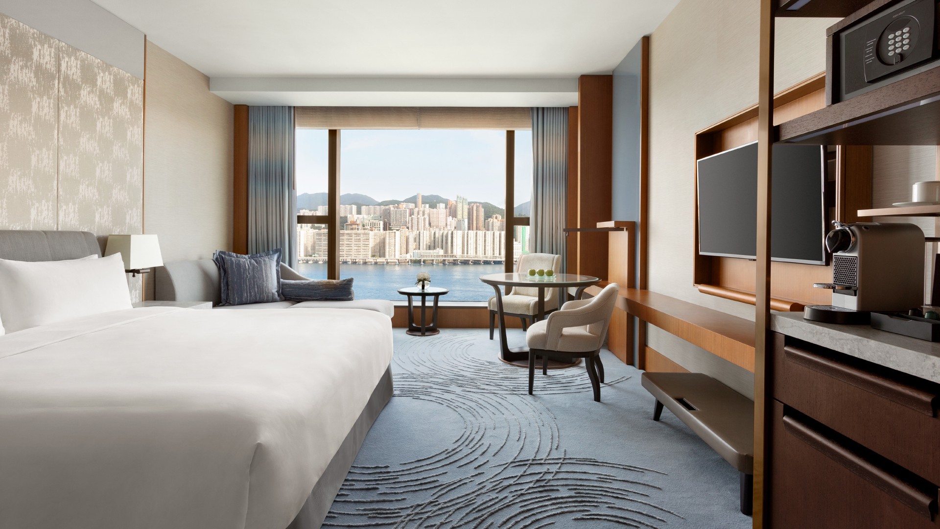 There are few more spectacular views of Victoria Harbour than from Shangri-La’s Kerry Hotel, Hong Kong. Whether you’re living the good life at the private Club Lounge (access included), lazing by the spectacular infinity pool or taking a breather in your city view room, a constant panorama of Hong Kong reminds that you’ve struck gold.