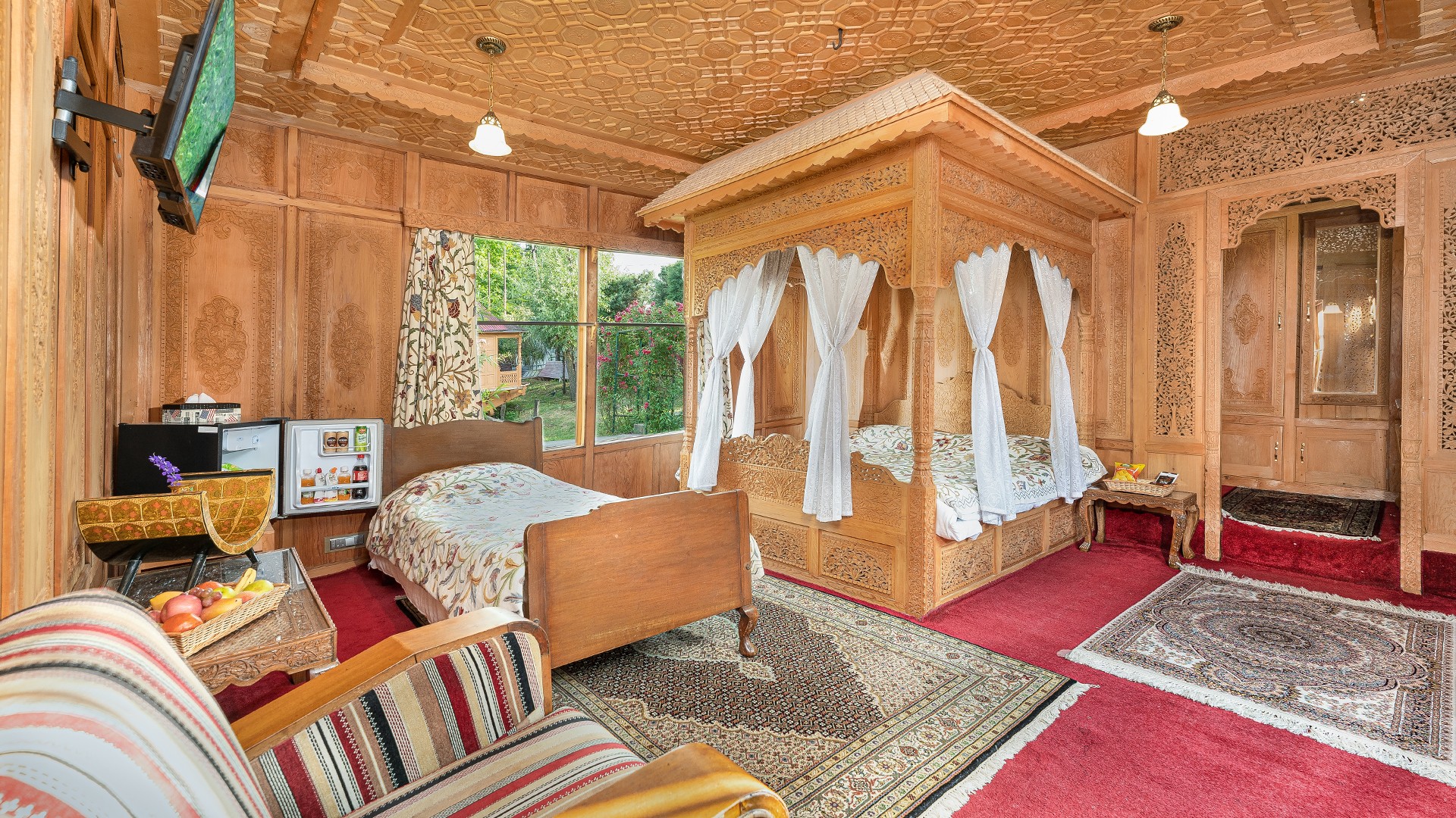 WelcomHeritage Gurkha Houseboats offers a unique stay on the serene Nageen Lake, with the popular Mughal Gardens of Nishat Bagh and Shalimar Bagh just a stone’s throw away. The floating luxury houseboat is located approximately a 45-minute drive from Srinagar International Airport (SXR). Airport transfers are not included in your package; please plan accordingly.