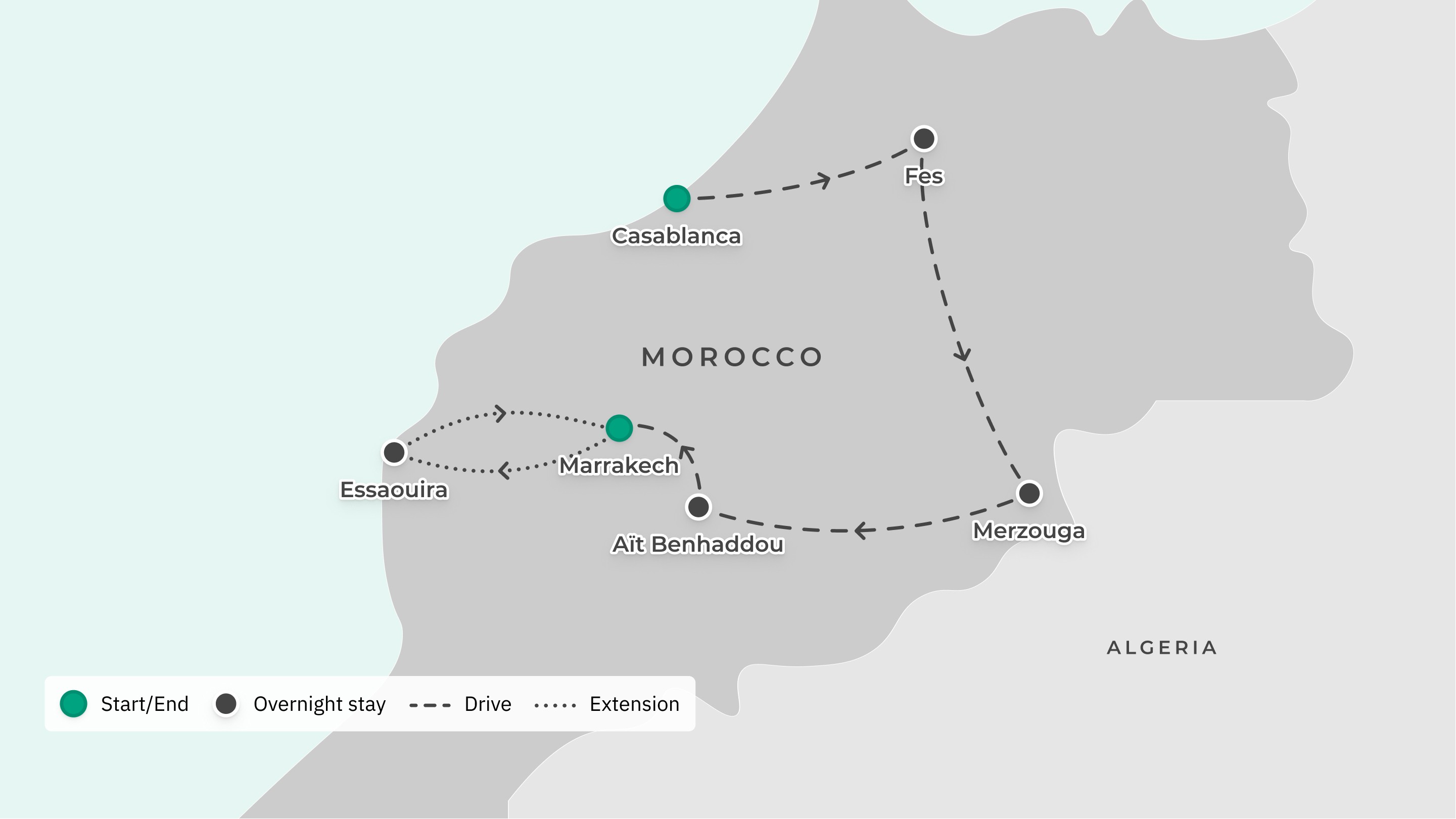 Your journey takes you to: Casablanca – Fes – Merzouga – Aït Benhaddou – Marrakech.