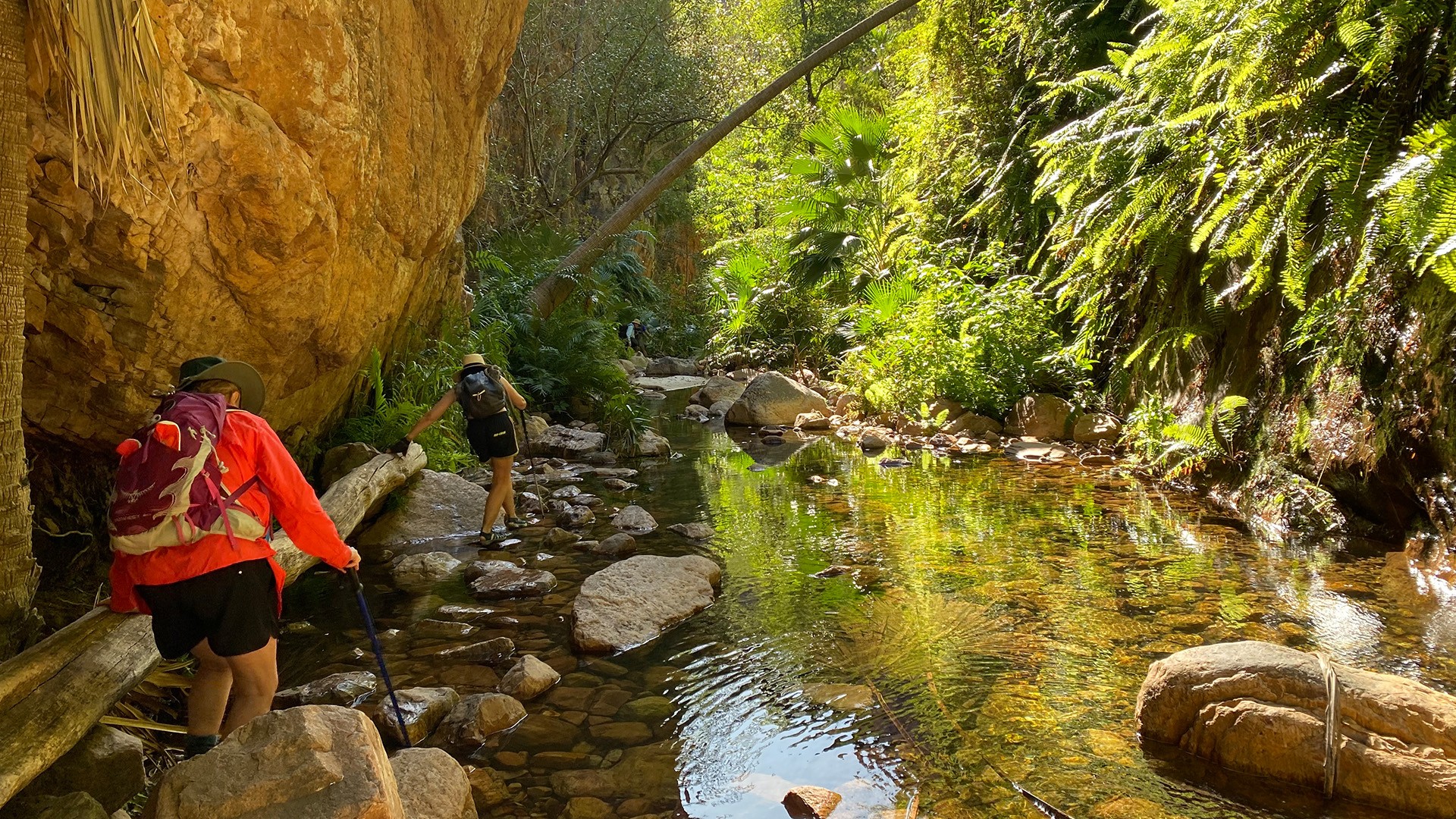 Soaring maroon cliffs afford shade from the outback sun en route and the wonderfully refreshing waters are your reward on arrival. Plunge into one of the two spring-fed pools, where you can float away for a while.
