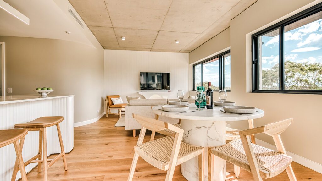 From two-bedroom apartments to a five-bedroom house with a private pool, Essence Peregian Beach has the perfect villa for groups and families of any size. This destination flips the traditional self-contained stay on its head: here, you’ll find all the luxuries of a resort with two heated pools (one with a bar), a restaurant and more, all showcasing achingly chic, coastal-inspired design. Just under a 20-minute drive from Sunshine Coast airport, Peregian Beach offers a quieter alternative to the hustle and bustle of Noosa while still retaining the restaurants, shopping and seaside charm of its popular neighbour.