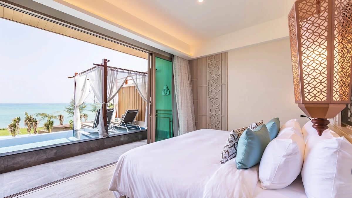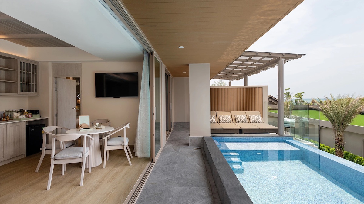 This isn’t a premium add-on or a room you need to upgrade into – every suite and villa at The Little Shore includes a private pool. The Seafront Pool Villa In Love has direct views of the Andaman Sea, and the suites face the water from a three-storey building with varying degrees of ocean outlook depending on your floor. For honeymooners especially, the level of privacy – your own water, your own terrace, no shared pool politics – makes this Thailand escape a no-brainer.