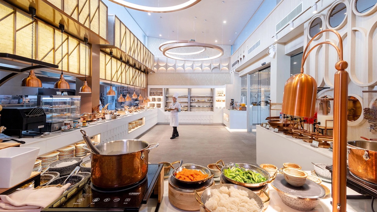 The property has two restaurants and two bars on-site; a meaningful spread for a hotel of this size. The Kati Restaurant handles dinner with a Thai-forward menu – the green curry is cited consistently by guests. Param Para takes the same cuisine somewhere more considered, better suited to a night you want to feel like an occasion. Kokos Pool Bar does lunch and cocktails where the infinity pool meets the horizon. And then there’s The Tin Lounge for something lower-key. Breakfast is a full buffet spread.