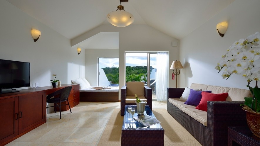 Surrounded by the emerald green sea of ocean spring water under the sapphire blue sky, it is a water palace that offers rooms all comlete with a private pool and a jacuzzi at the terrace.