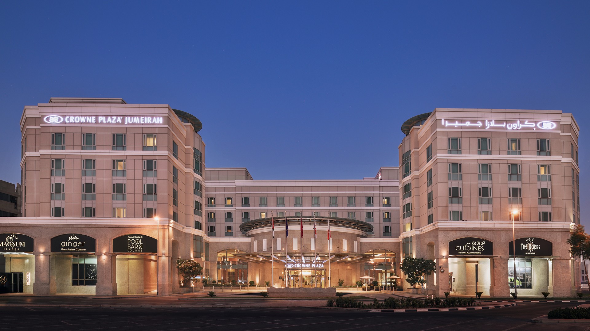 Found in the vibrant neighbourhood of Jumeirah 1, Crowne Plaza Dubai Jumeirah, an IHG Hotel is ideally located for seeking a stay in the heart of the action, with Jumeirah Beach, Port Rashid and La Mer Dubai all nearby. Dubai International Airport (DXB) is located approximately a 15-minute drive away. Airport transfers are only included in certain packages, please plan accordingly.