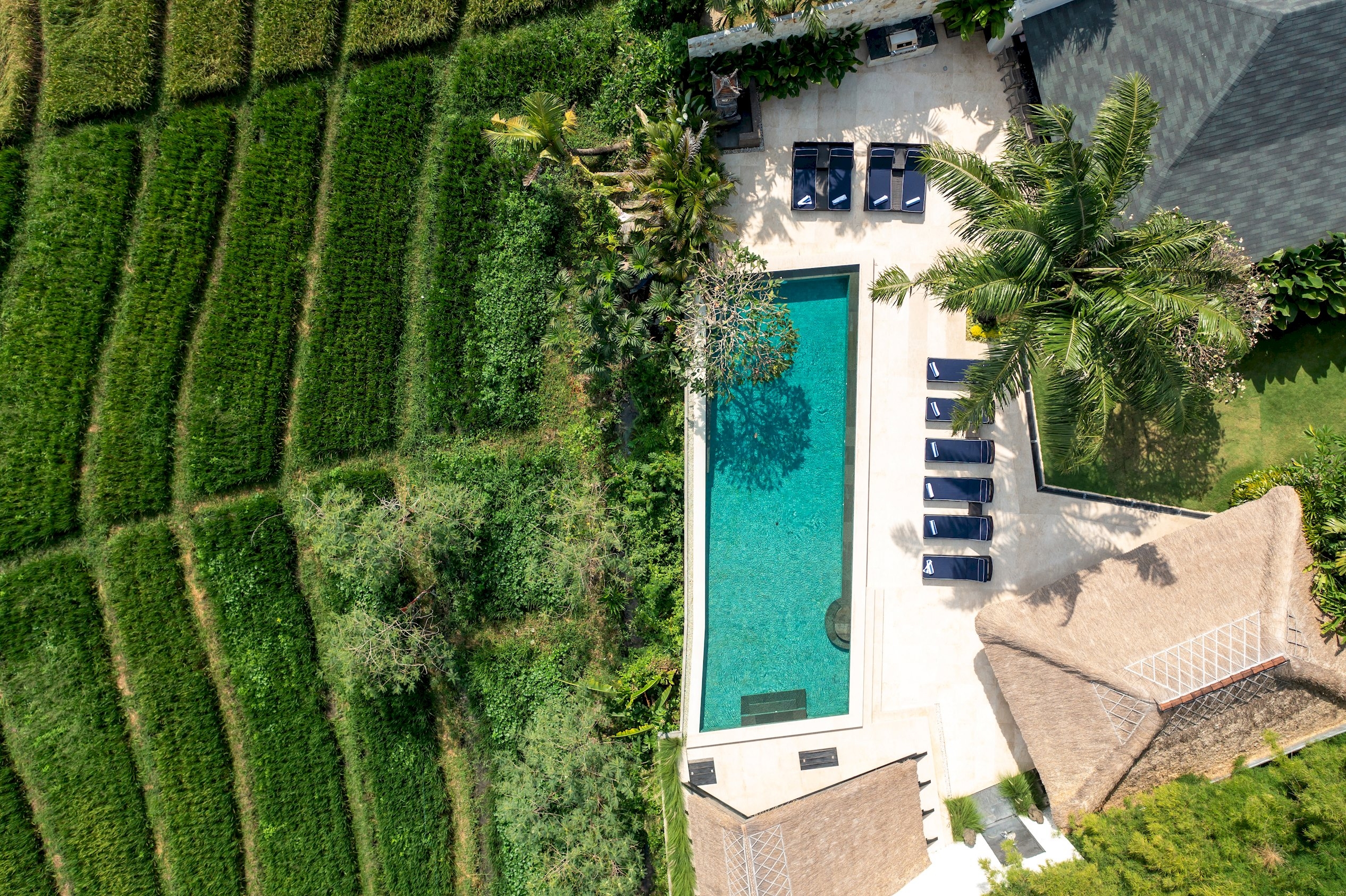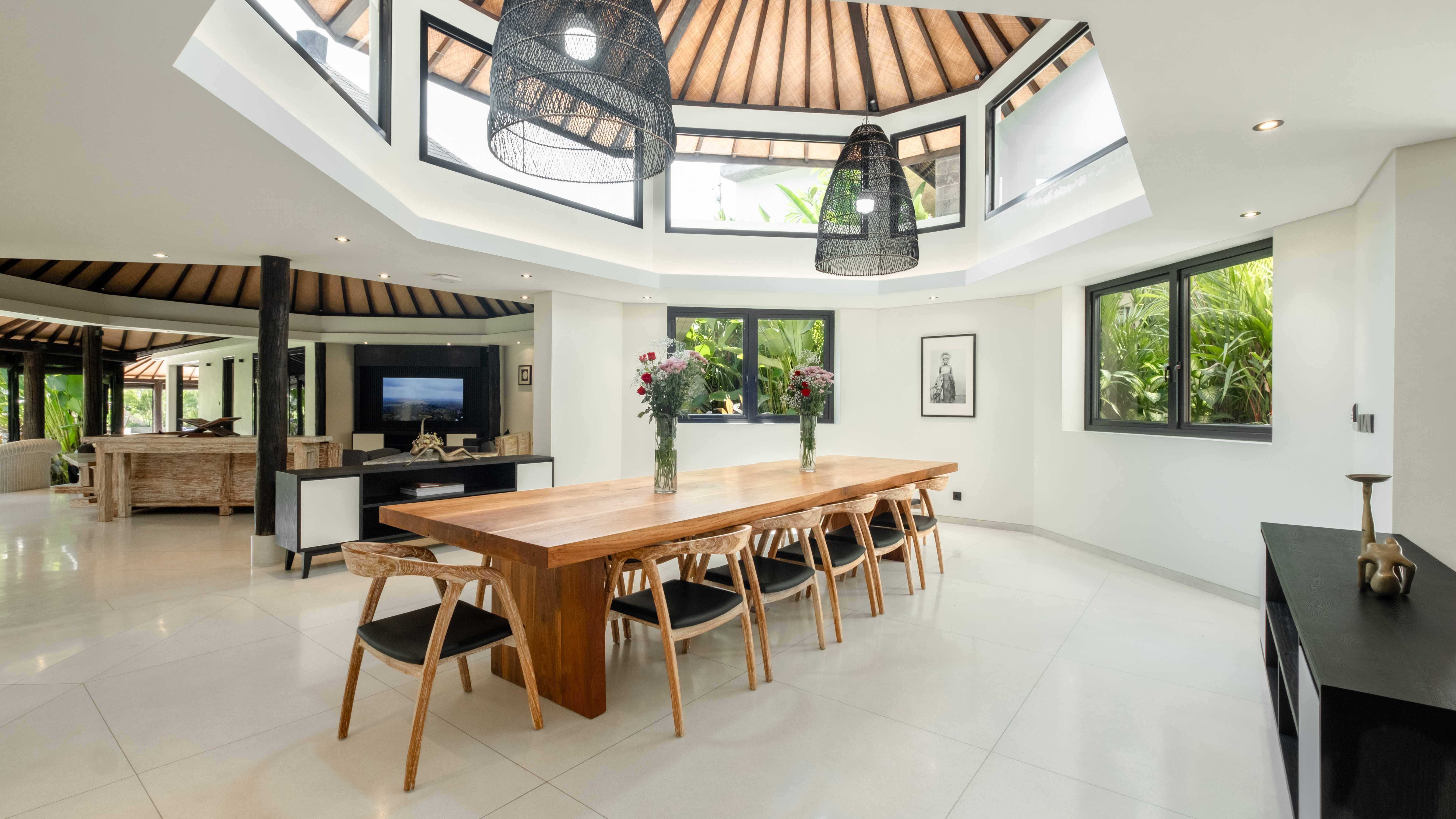 Embrace Balinese tranquillity at Villa Kubu Dewi Sri, a five-bedroom sanctuary set against the serene backdrop of Canggu’s verdant rice fields. This opulent retreat harmoniously fuses contemporary design with traditional Balinese elements, providing an unforgettable haven for families or close-knit groups.