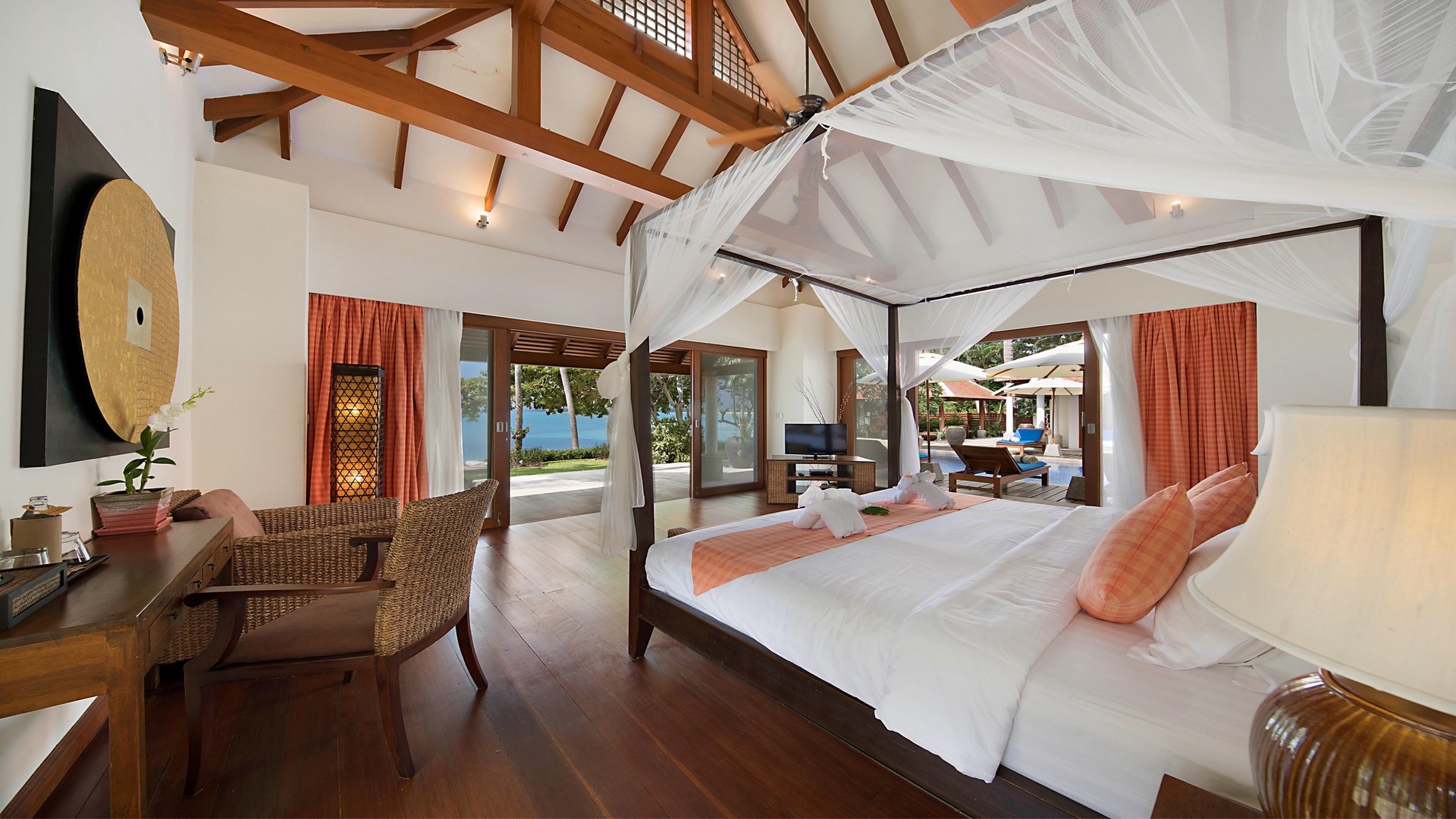 The villa’s beachfront location offers a plethora of outdoor activities such as kayaking and volleyball, just steps away. Savour the tranquillity of your surroundings, with the turquoise waters and fine sand of Koh Samui’s tropical paradise right in your backyard.