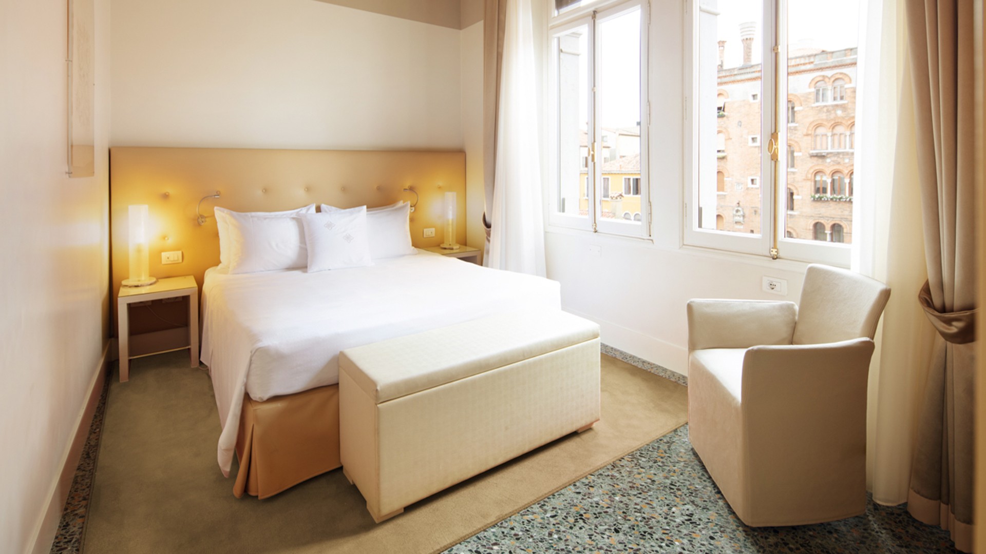 The hotel is located approximately a 50-minute ferry ride from Venice Marco Polo Airport (VCE). Airport transfers are not included in your package, please plan accordingly.