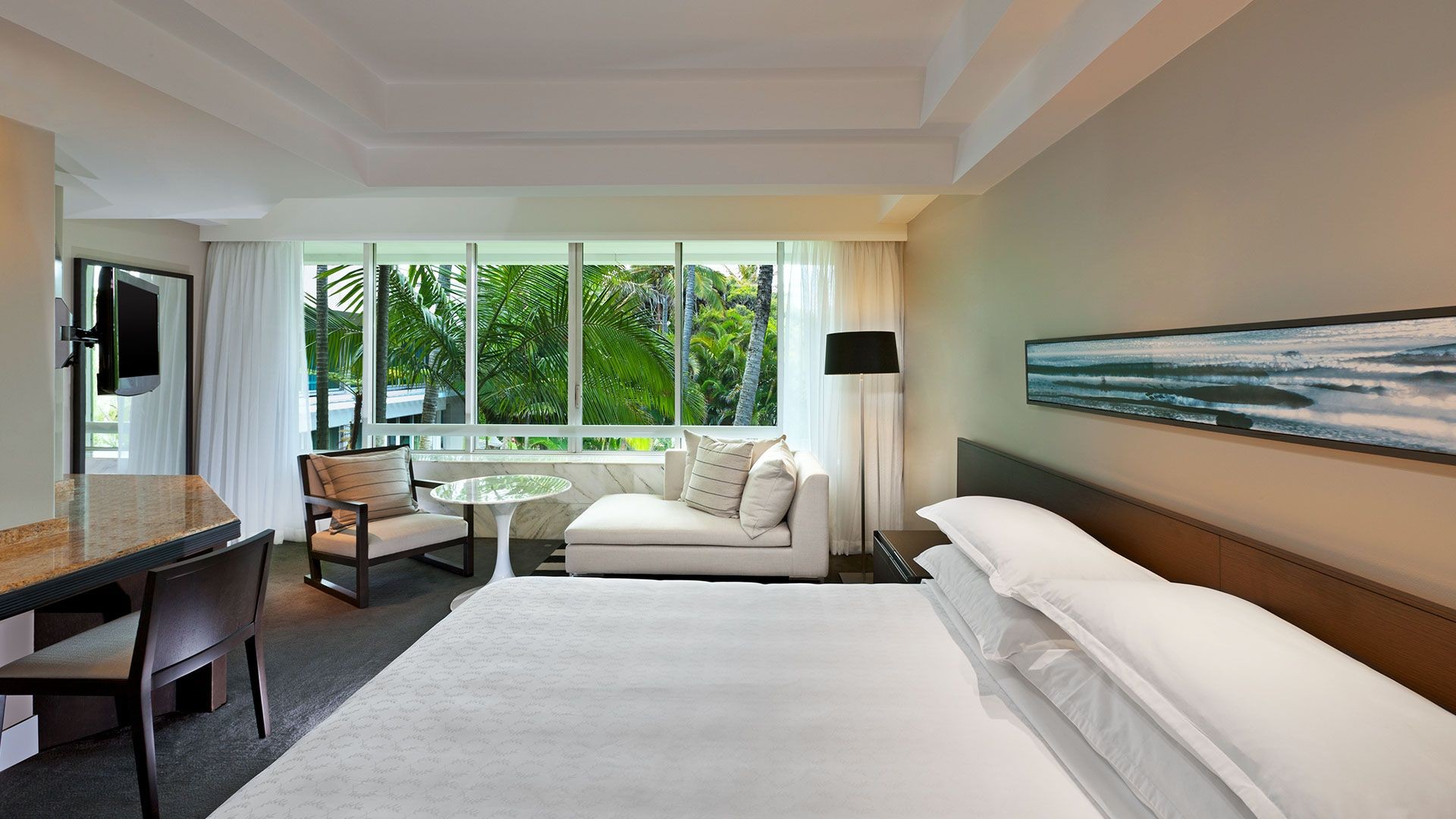 Sheraton Grand Mirage Gold Coast sits on a pristine stretch of beach, connected to the boutique shopping and dining Marina Mirage by a sky bridge and less than 10 minutes from the heart of Surfers Paradise. With an address on Sea World Drive and approximately 40 minutes’ drive from Gold Coast Airport, this is the ultimate sun-kissed launchpad for discovering the Gold Coast.