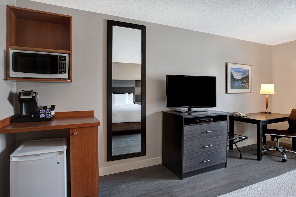 Make yourself at home in one of the 76 air-conditioned rooms featuring microwaves. Complimentary wired and wireless internet access keeps you connected, and cable programming provides entertainment. Private bathrooms with shower/tub combinations feature complimentary toiletries and hair dryers. Conveniences include desks and coffee/tea makers, and housekeeping is provided on request.