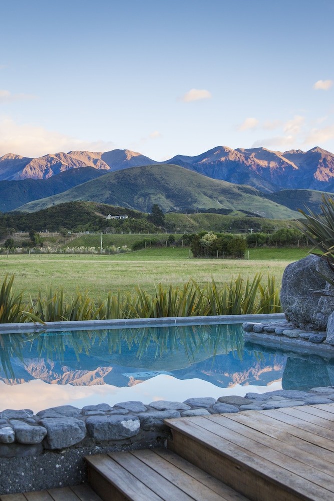 Perched between the rugged peaks of the Kaikoura mountains and the wild Pacific coastline, this striking retreat offers a rare connection to New Zealand’s natural splendour. Choose from contemporary lodge suites or extraordinary treehouses elevated among native manuka, each with panoramic views and a cosy wood-burning fireplace. This is New Zealand at its finest, set between endless countryside, a deer paddock and the turquoise waters of Mangamaunu Bay.