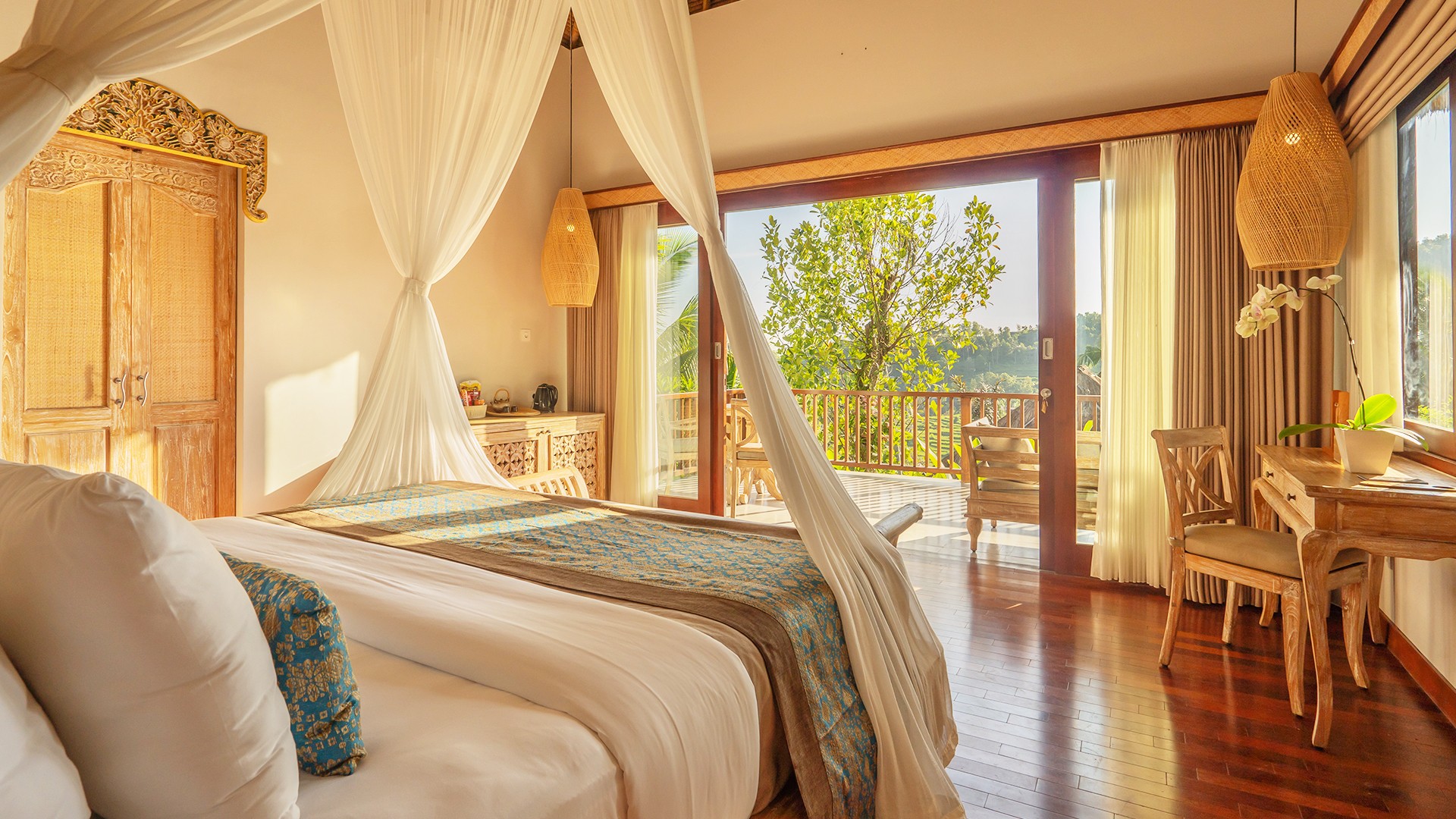 Maha Hills Resort is ideally situated in the serene jungle of Sambangan, overlooking tiers of rice fields. A short drive away, you’ll find the sparkling beachfront of Lovina and the breathtaking Aling Aling waterfall, a hidden gem in Sambangan Village. This Bali retreat is approximately a 2.5-hour drive from Ngurah Rai International Airport (DPS), offering easy access to the north island’s natural beauty and attractions. Airport transfers are included in select packages, see Packages and Fine Print for details.