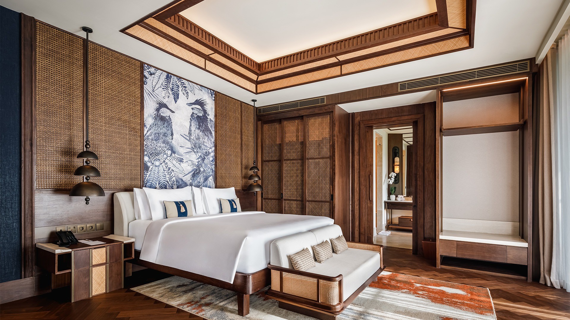 Suites are designed for indulgence, with intricate hand-carved millwork, striking traditional art and private terraces overlooking lush Balinese gardens. A magnificent central pool sits just steps from the azure waters of Sanur Beach, while the ultra-sleek fitness centre and dedicated Niskala Kids’ Club cater to every type of traveller.