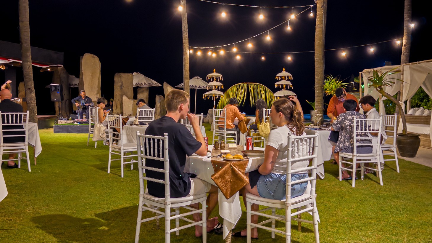 Settle into an adults-only beachfront sanctuary where the evening unfolds against Bali’s dramatic black-sand shoreline. As night falls, savour an exceptional BBQ dinner for two while a live acoustic performance brings a soft, soulful soundtrack to your dinner, blending seamlessly with the sound of the waves. Thoughtful design, traditional Balinese touches, and complete privacy shape every moment, creating a space where you can slow down, connect and savour a truly romantic escape.