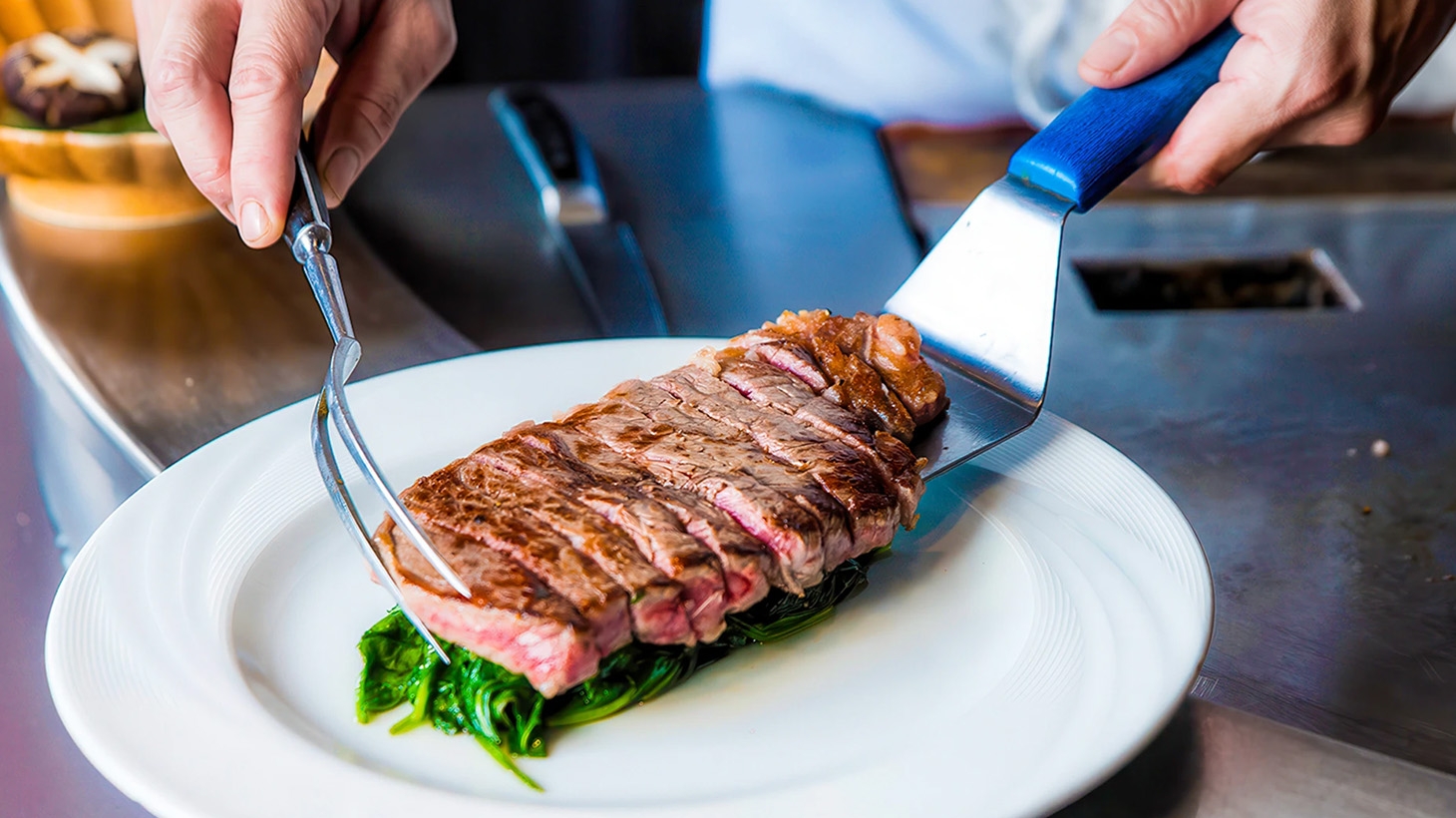 - Multi-course ‘Wagyu of Land and Sea’ teppanyaki banquet with O’Connor grass-fed tenderloin