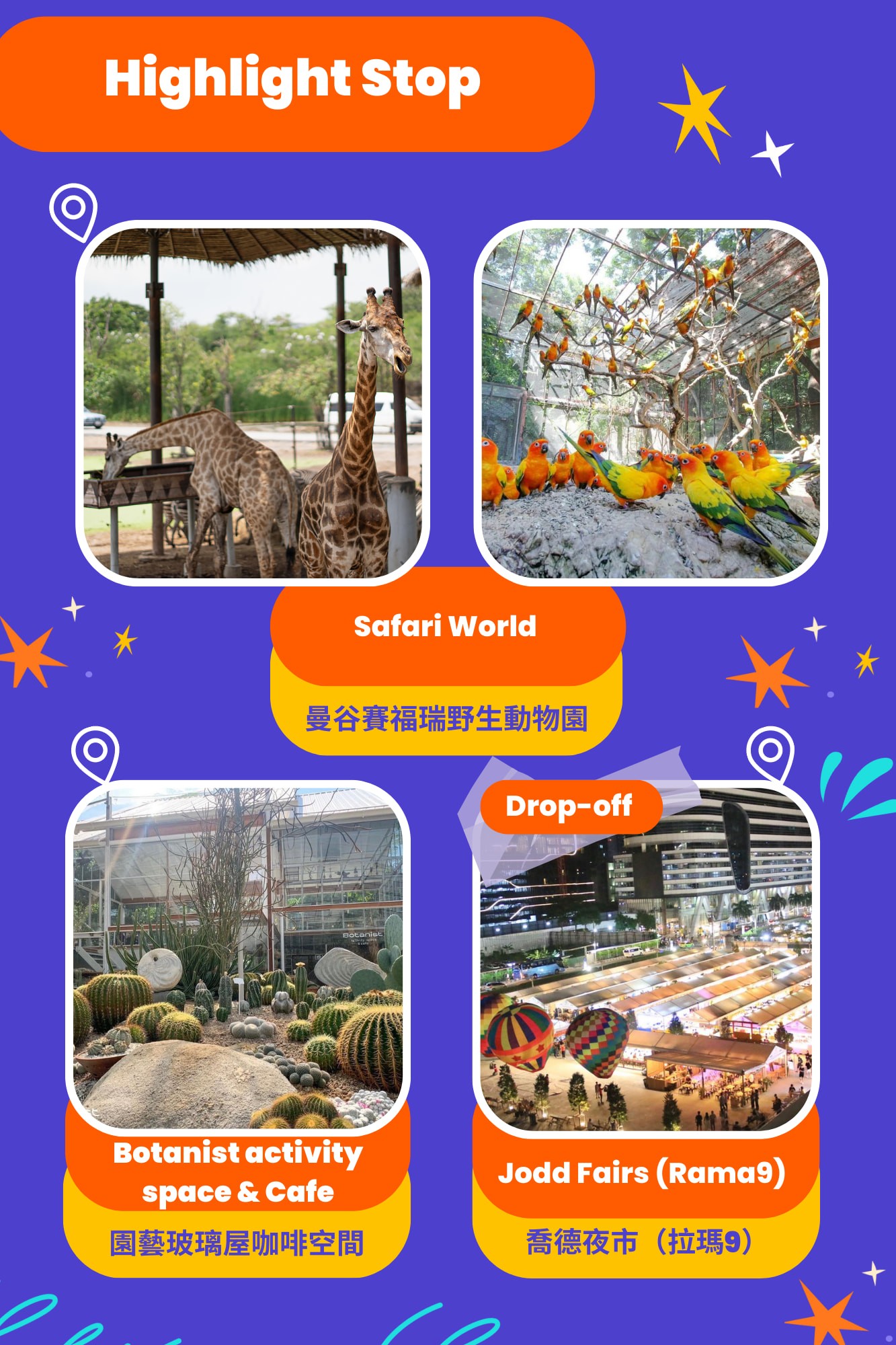 Bangkok Day Tour: Safari World, Botanist Activity Space Cafe, and Jodd Fairs (Rama 9)