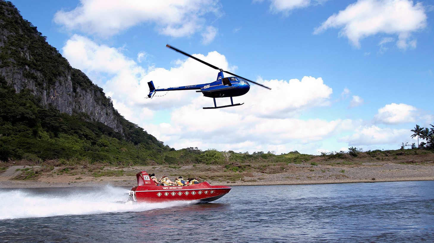 Scenic Helicopter Flight & Sigatoka River Safari or Cave Tour with Lunch & Village Visit