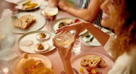 • Enjoy two glasses of Étoile with lunch and half a glass of Cuvée Riche with dessert