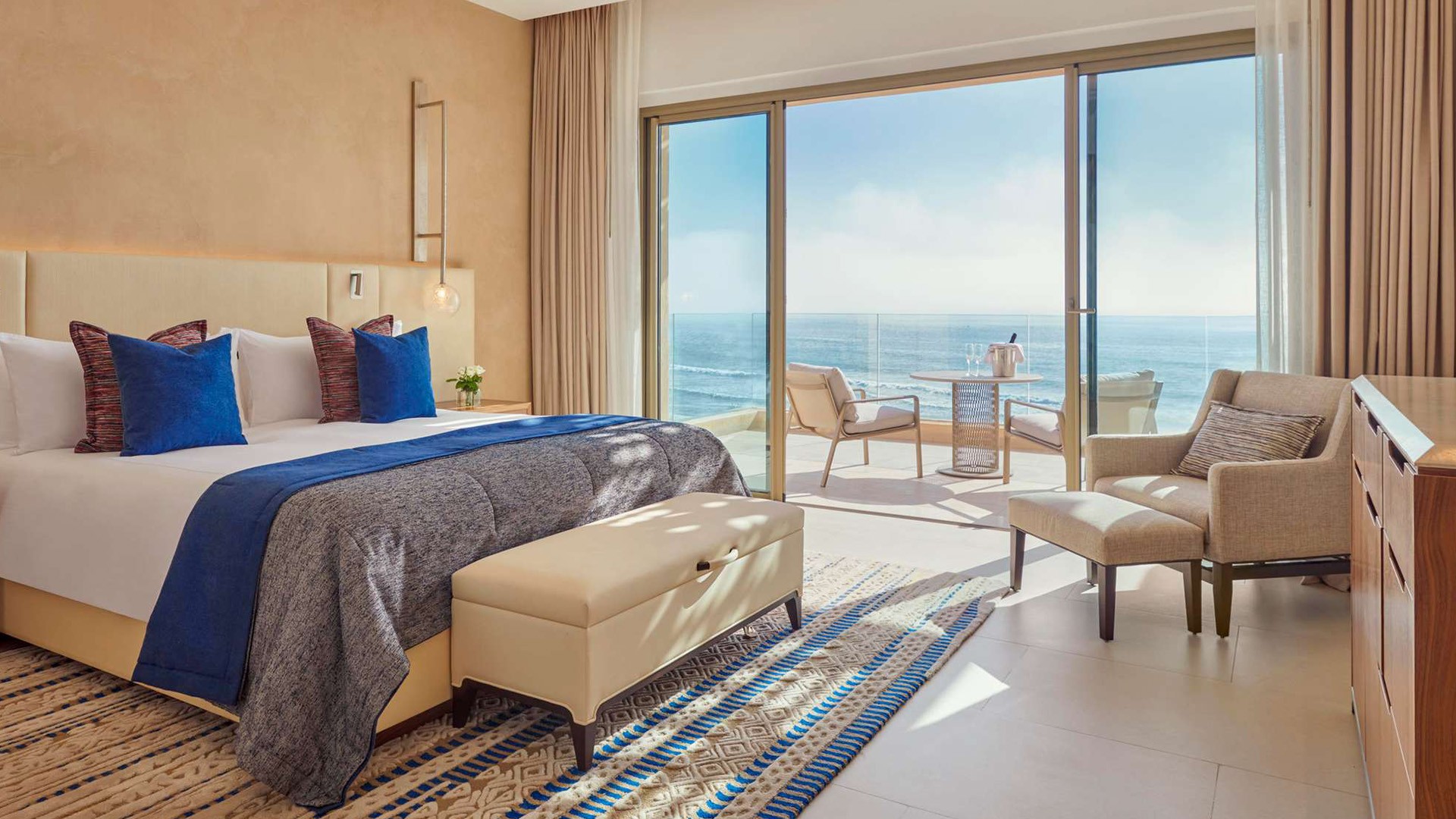 Set along Morocco’s sun-drenched Atlantic coast, Fairmont Taghazout Bay is perfectly positioned between the golden sands of Taghazout Beach and the rugged Atlas Mountains. 30 minutes from Agadir, this serene seaside haven offers the ideal blend of laidback surf-town charm and five-star coastal luxury. The hotel is located approximately a 50-minute drive from Agadir Al-Massira International Airport (AGA). Airport transfers are not included in your package, please plan accordingly.