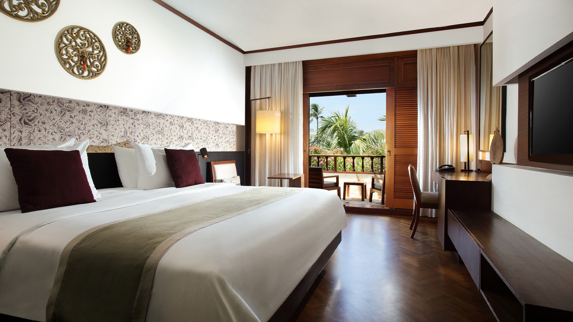 Nusa Dua Beach Hotel & Spa enjoys an incredible beachfront location on Bali’s southern peninsula, with Nusa Dua Beach right on its doorstep. The resort is also enviably close to the Nusa Dua Resort complex, a secure, gated destination surrounded by renowned tourist attractions, iconic hotels and the Bali Collection shopping and dining destinations. Nusa Dua Beach Hotel & Spa is an approximately 20-minute drive from Bali’s Denpasar Airport (DPS). Airport transfers are not included in your package; please plan accordingly.