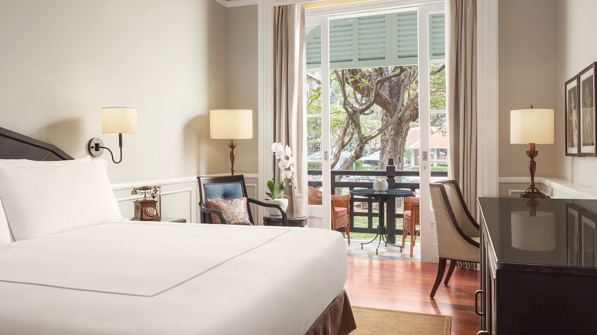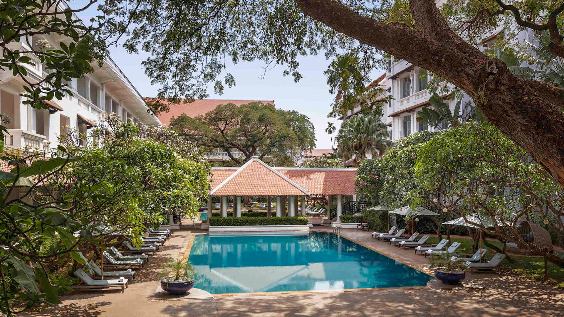 Raffles Hotel Le Royal is ideally situated in the vibrant heart of Phnom Penh and a 10-minute drive from the Royal Palace and National Museum of Cambodia. The hotel is located approximately a 30-minute drive from Phnom Penh International Airport (PNH). Airport transfers are not included in your package, please plan accordingly.
