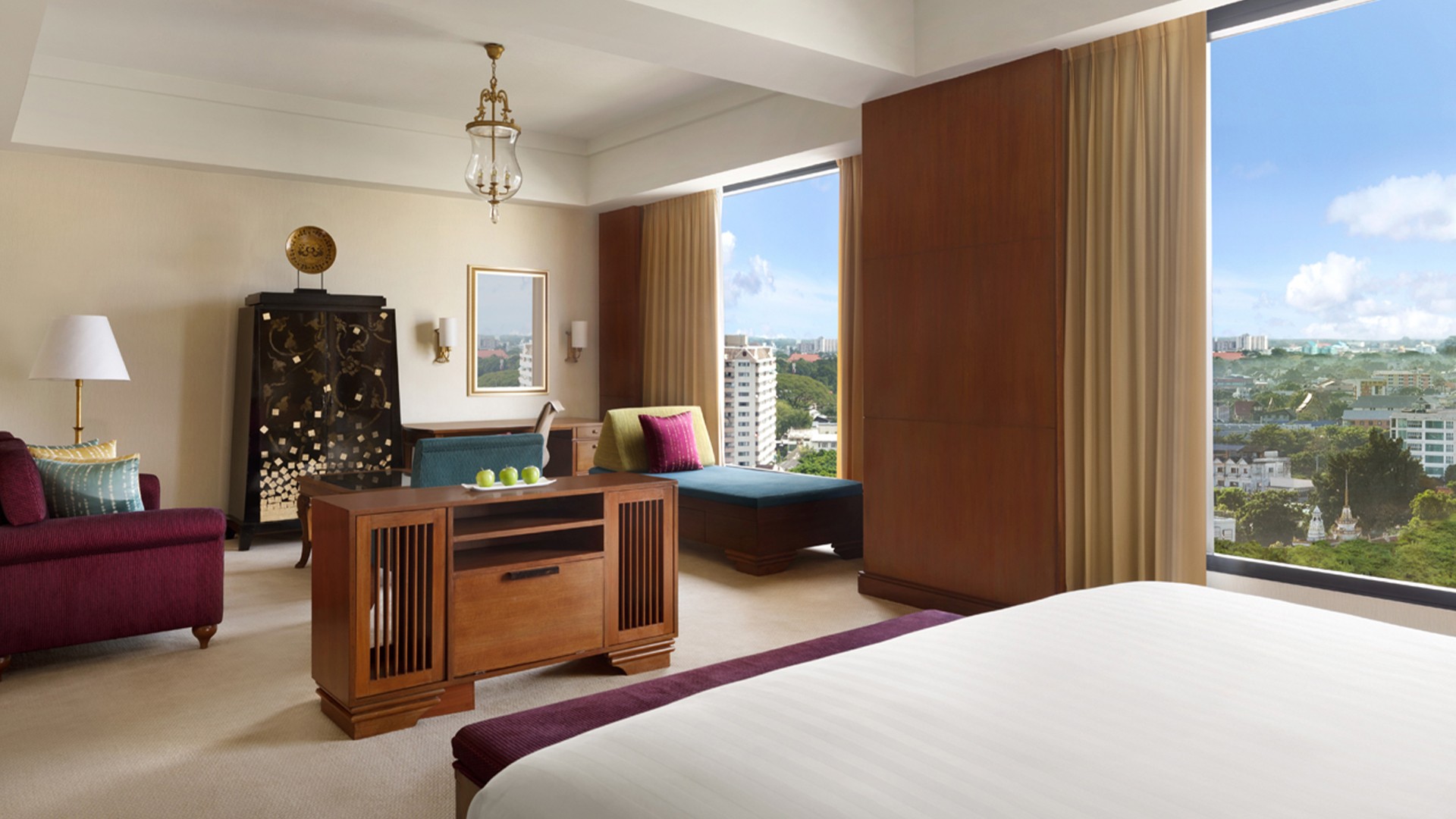 Nestled within the cultural city centre near the Mae Ping River, Shangri-La Chiang Mai delivers five-star luxury and spectacular views overlooking the stunning vistas of Northern Thailand’s mountain ranges. The resort is approximately a 15-minute drive from Chiang Mai International Airport (CNX). One-way airport transfers are included in select packages. Contact Shangri-La Chiang Mai prior to arrival to arrange.