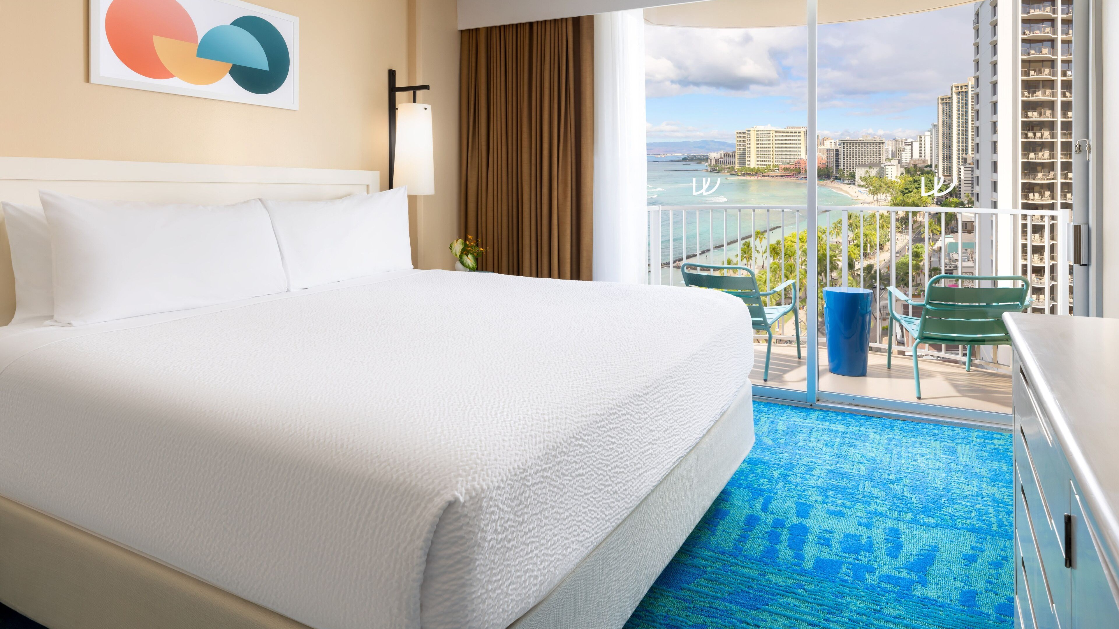 Cross the street to Kūhiō Beach and bask in the coastal glow on the mellow end of Waikiki Bay. The Twin Fin Hotel – born from a multi-million-dollar renovation – channels the golden era of Hawaiian surf culture. From the art on the walls to the rolling swells just steps from your door, families chasing that true Hawaiian experience will immediately catch a wave of warm hospitality.