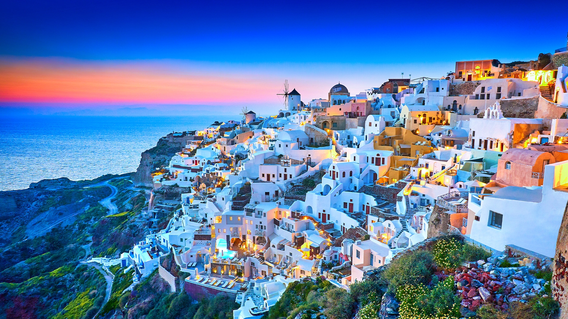• Deluxe air-conditioned coach and ferry transfers between Athens and Mykonos, and Mykonos and Santorini