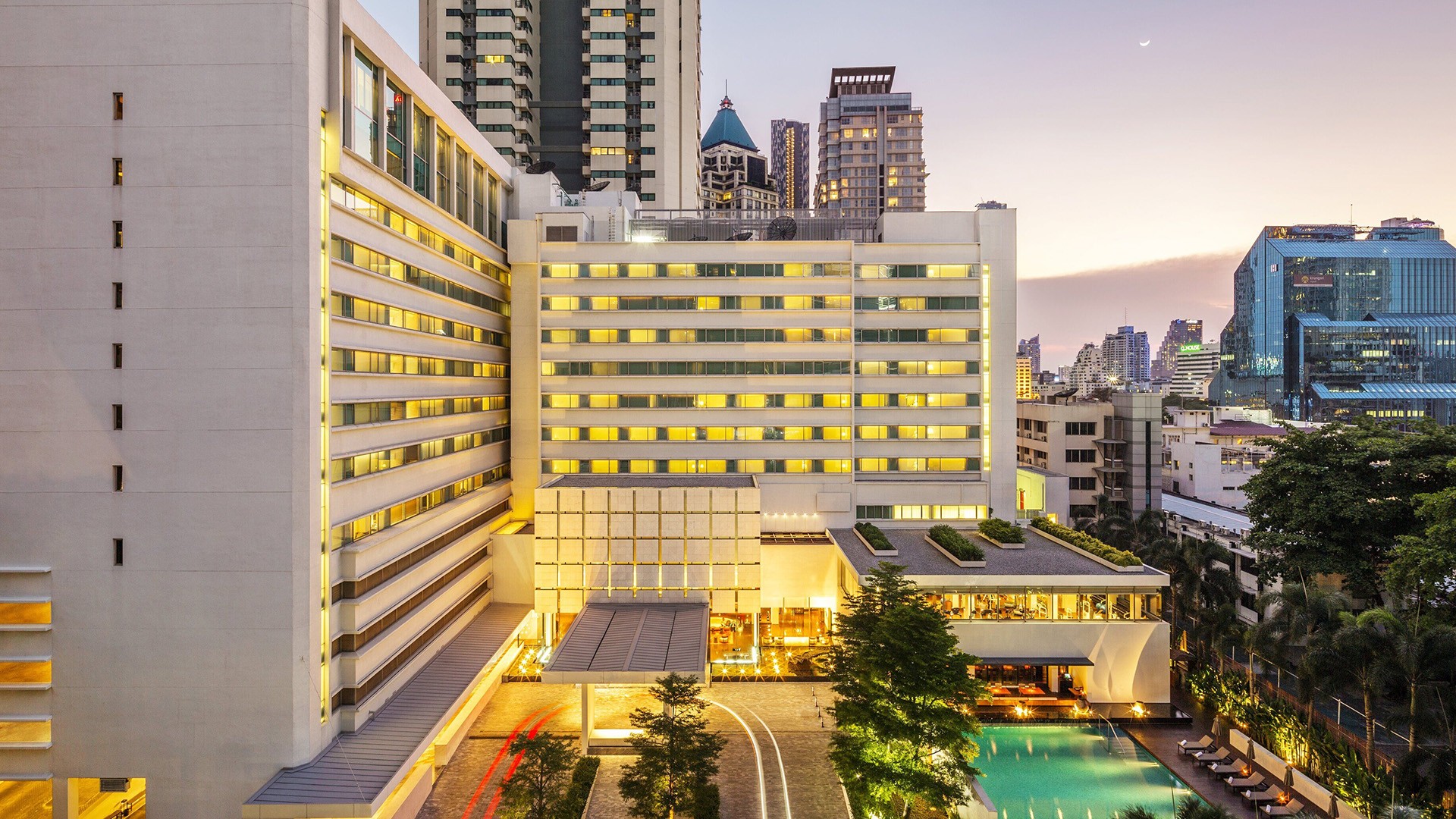 The hotel is located approximately a 35-minute drive from Suvarnabhumi Airport (BKK). Airport transfers are included in select packages, please see the Fine Print for details.