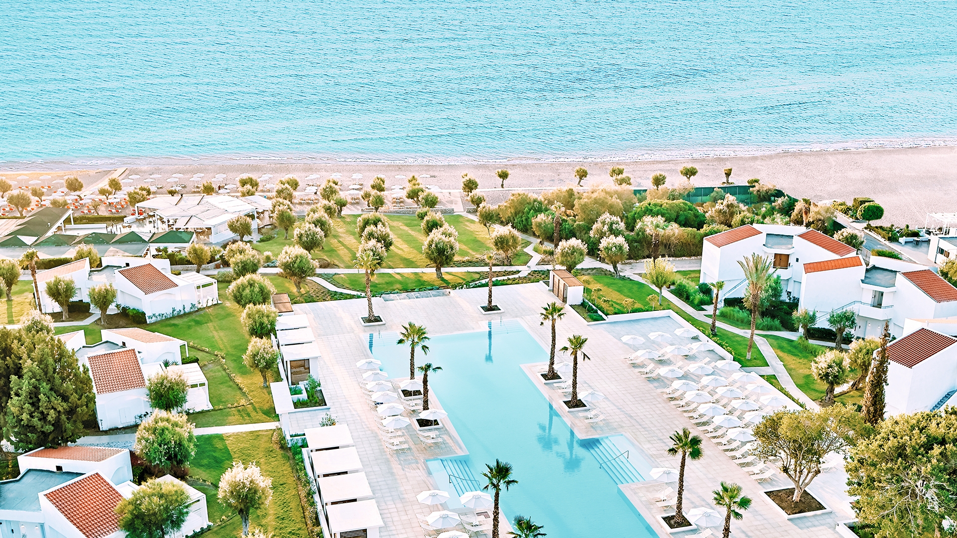 Located on the golden sands of Faliraki Beach, GRECOTEL LUX ME DAMA DAMA, RHODES offers guests the perfect chance to explore the island’s famous charms – whether that’s mountain biking through deer-filled hinterland, diving through ancient sunken spas or exploring the Rhodes Old Town’s extraordinarily preserved historic streets. The hotel is located an approximately 20-minute drive from Rhodes International Airport Diagoras (RHO). Airport transfers are not included in your package; please plan accordingly.