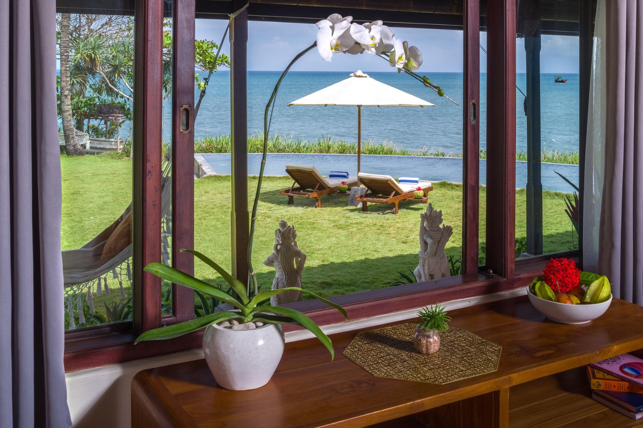 The villa, split into two separate structures for ultimate privacy, features ensuite bedrooms, a private pool, and an alfresco dining area. Just 30m from the beach and a short drive from local attractions, this hilltop haven offers a unique blend of seclusion and convenience.