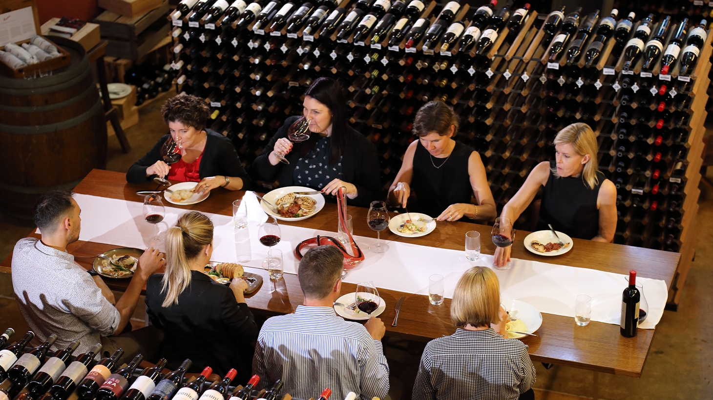 Gather your fellow wine enthusiasts for a remarkable dining experience at the National Wine Centre, home to the Southern Hemisphere’s largest open wine cellar. Indulge in a sommelier-led gastronomic journey as you dine amidst Australia’s most prestigious wine collection. Enjoy a bespoke four-course meal, masterfully curated by the executive chef and perfectly paired with wines selected by expert sommeliers to complement your chosen theme. Whether celebrating a special occasion, hosting a family event or savouring an intimate meal, this unforgettable experience seamlessly combines sophistication and culinary artistry.