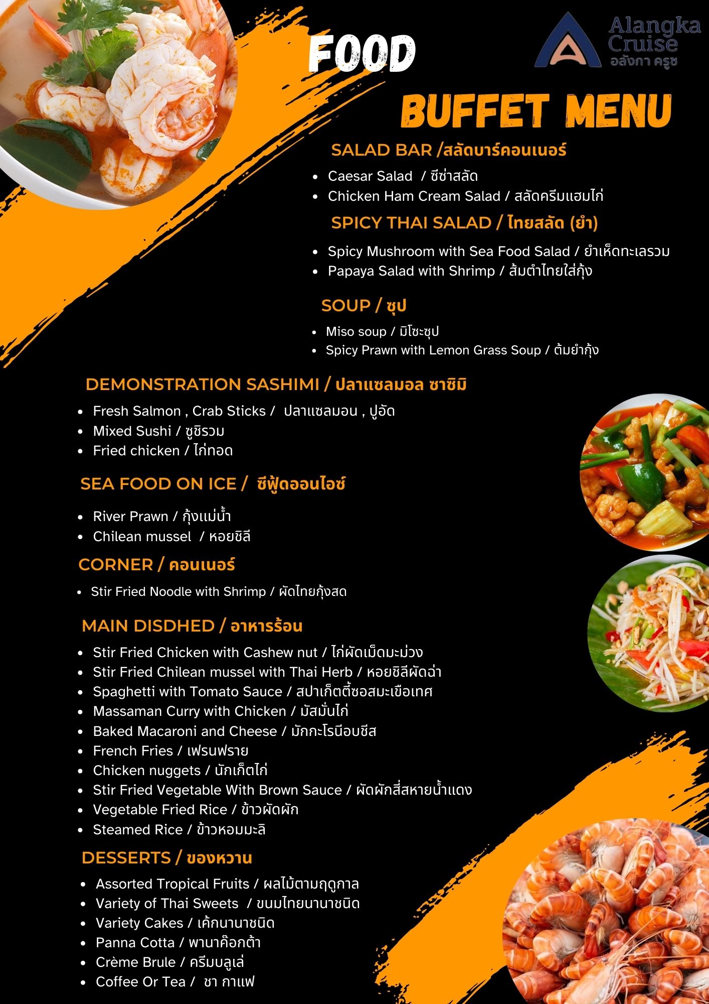• International Buffet and Sea food Buffet. Please see the menu