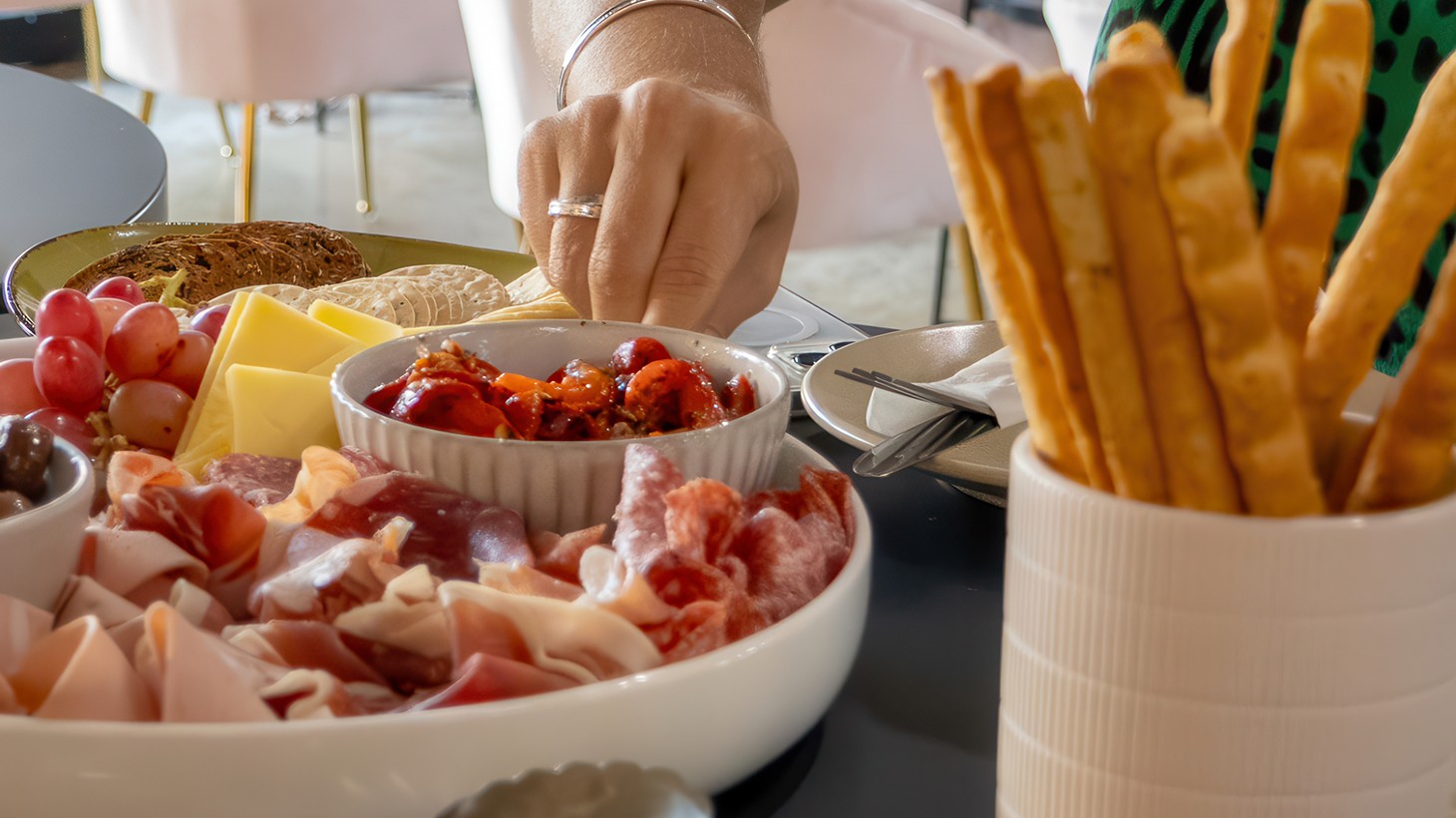 - Snack on shared antipasto platter