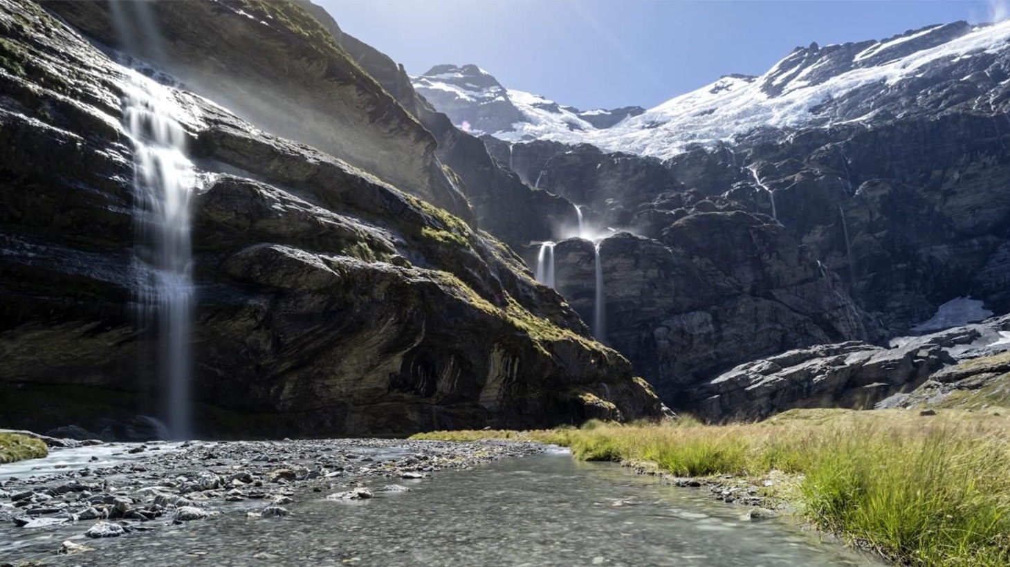 - Exclusive landing at Earnslaw Burn beneath hanging glaciers and waterfalls