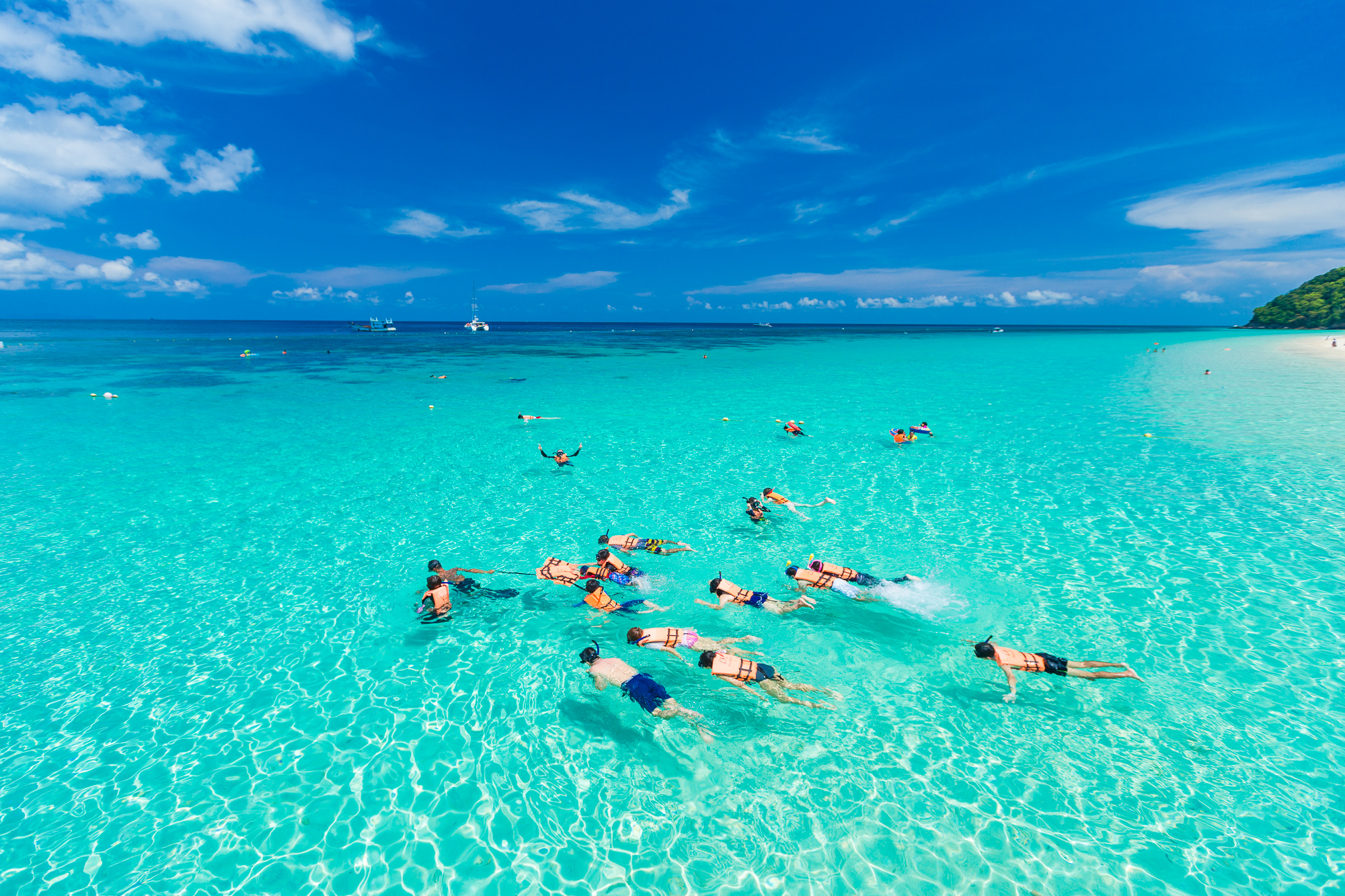 • [Attraction/experience] 14:50, Guided tour, Phi Phi Don Tour, Snorkeling time at Phi Phi Don - Get ready! to snorkel and surrounded by the school of fish.