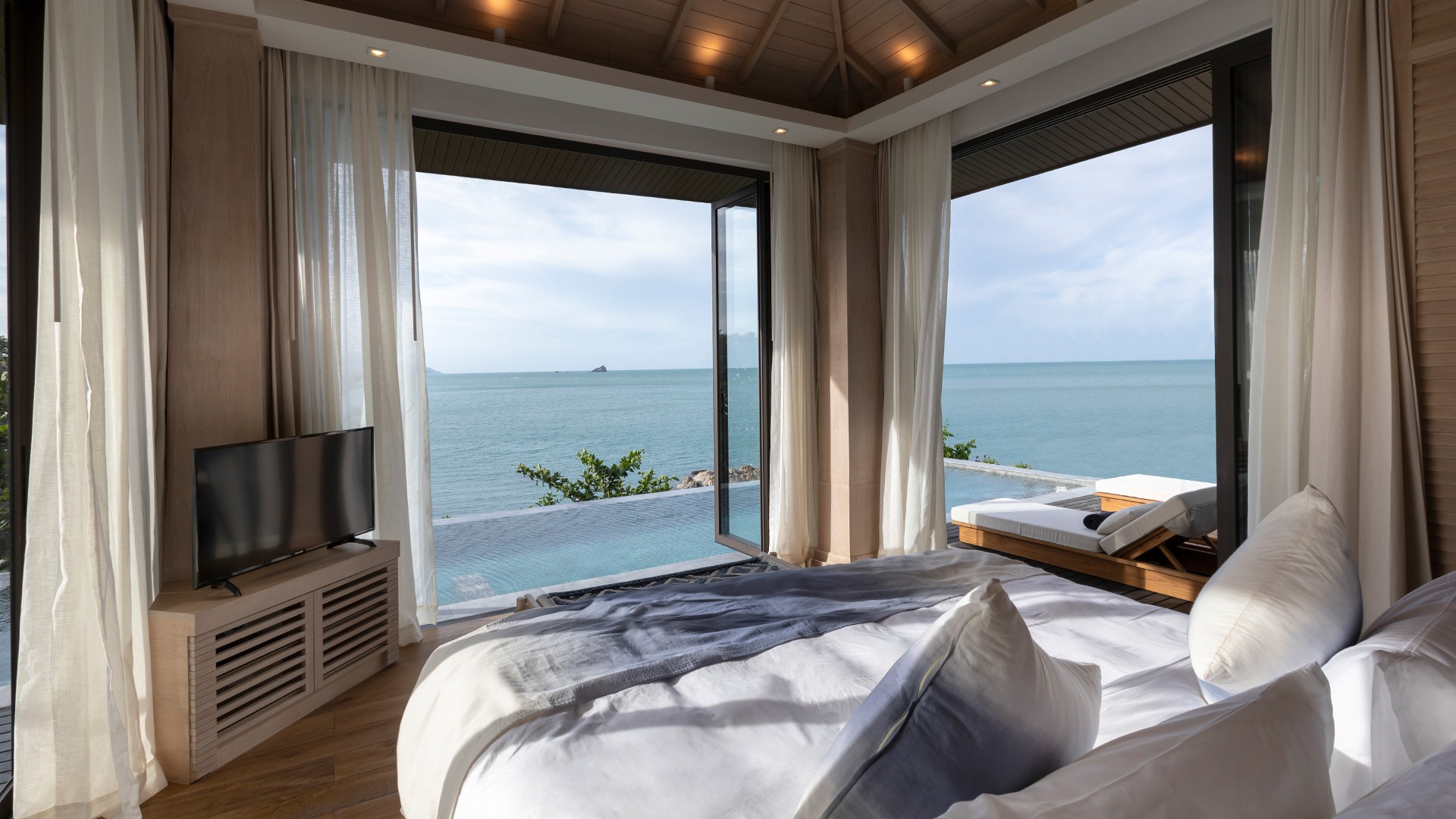Surrounded by a breathtaking bay of jungle-cloaked cliffs and azure waters, Cape Fahn Hotel is located on a private island off Koh Samui’s Choeng Mon Beach. The hotel is located approximately a 15-minute drive and a short boat trip from Samui Airport (USM). Airport transfers are included in your package, please see the Fine Print for details.