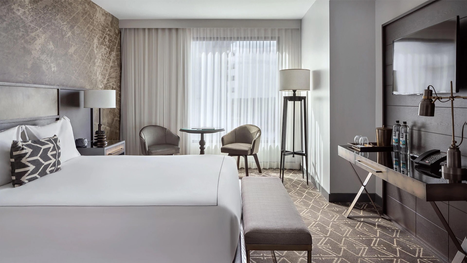 • Hotel amenity and resort fee valued at US$29.95 plus tax is per day, per room. This includes sparkling or still water at check-in, in-room La Colombe coffee, 24-hour fitness centre access with Peloton bikes, a reusable YETI water bottle (for use during your stay), live music at Geraldine’s, complimentary use of TREK bikes, rooftop pool access with towel service and sunscreen, pet-friendly amenities, high-speed Wi-Fi and early access to book poolside cabanas.