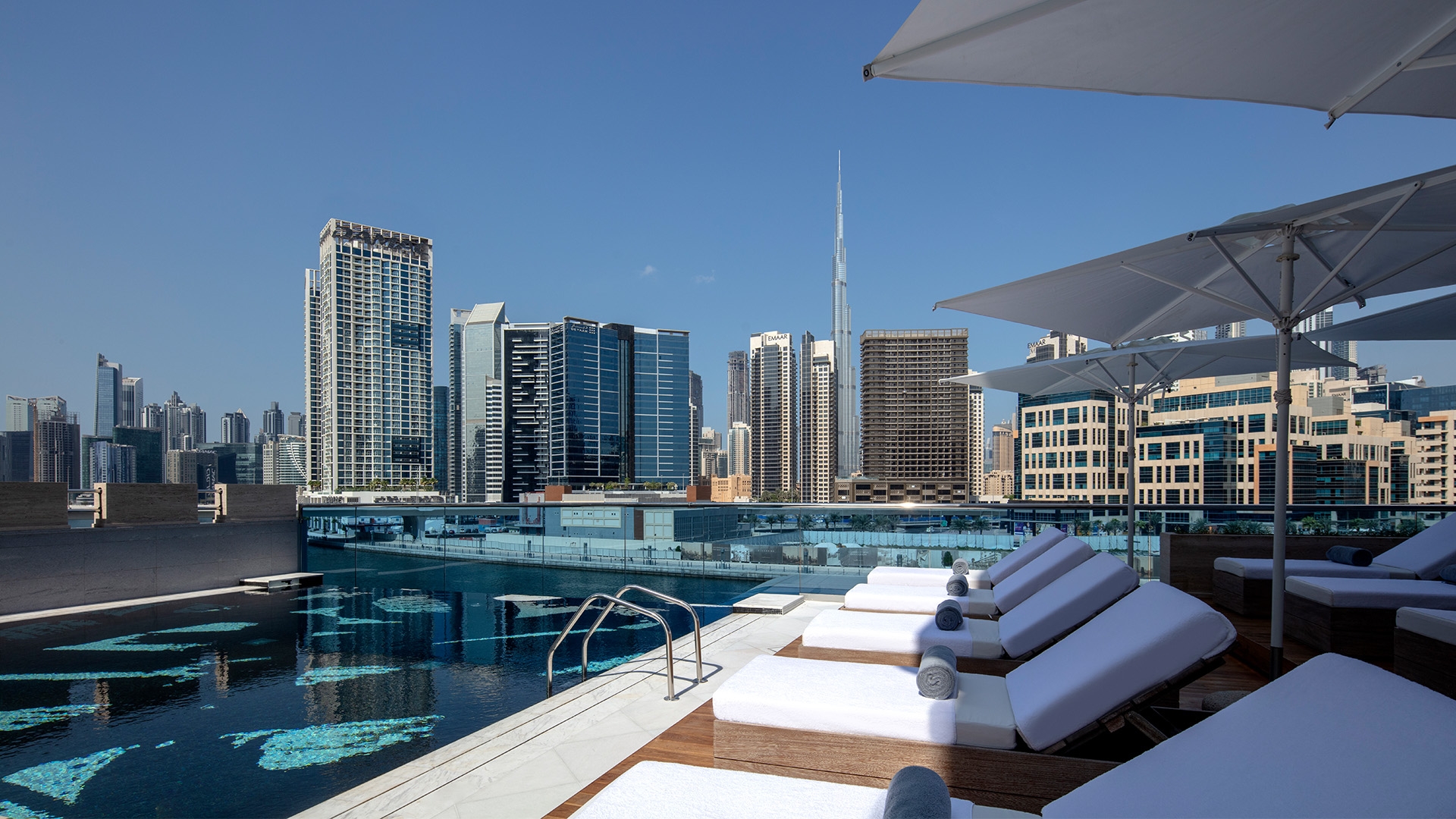 Perched along the Dubai Canal, Hyde Hotel Dubai offers easy access to the Dubai Mall and the world’s tallest skyscraper, the Burj Khalifa. Some of the city’s best attractions including the iconic Palm Jumeirah, the Dubai Marina, Kite Beach and the souks of Old Dubai are all within a 30-minute drive away.