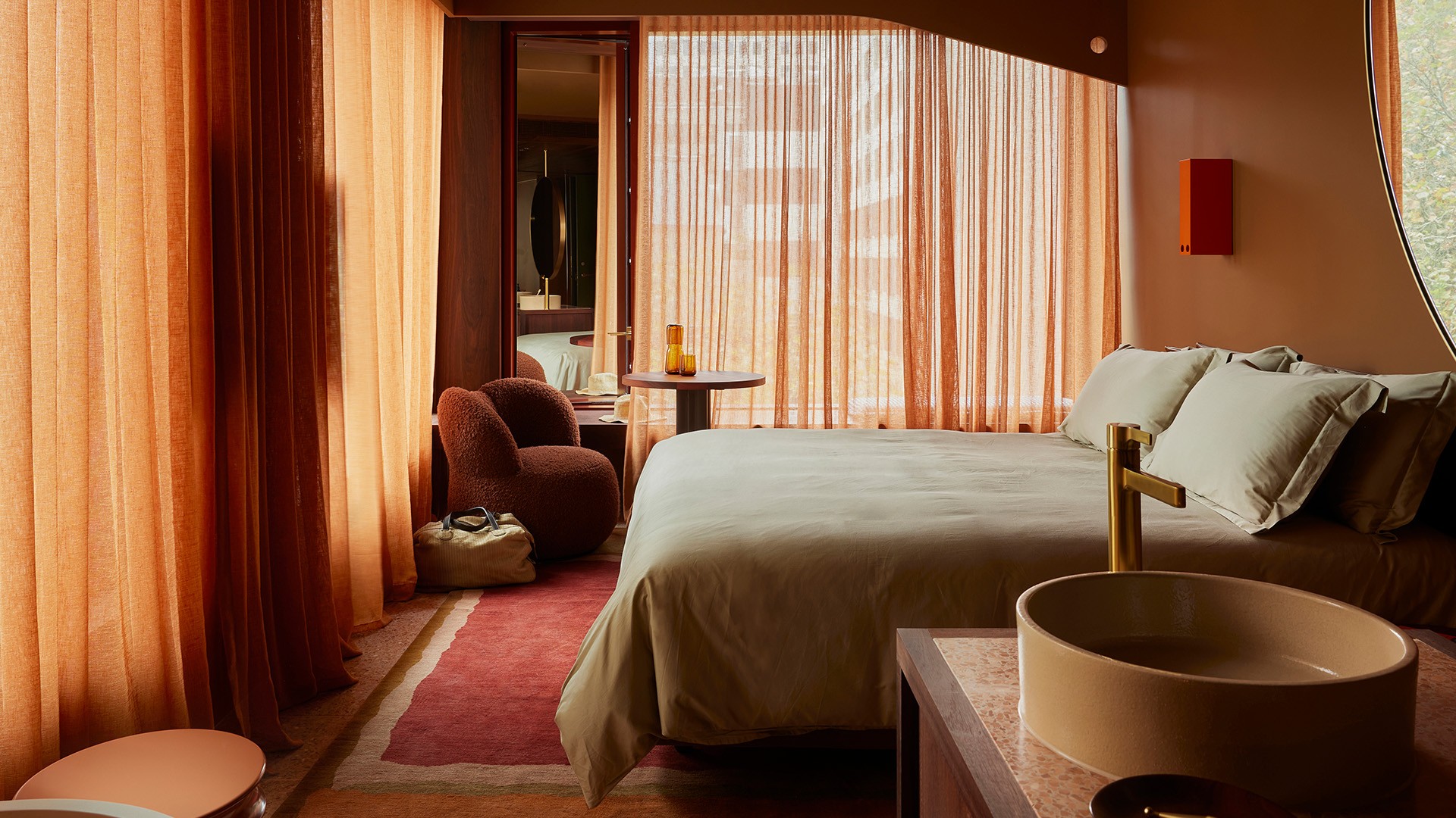From the moment you step into reception, each artful installation sets the tone for a stay that’s as stylish as it is invigorating. The rooftop Cleo bar is a destination in itself, where dramatic red brick architecture frames the skyline and Mediterranean-inspired plates pair perfectly with handcrafted drinks. Later, head downstairs to Mr Mills cocktail bar for late-night DJs, supper club vibes and the chance to rub shoulders with Melbourne’s glittering crowd.