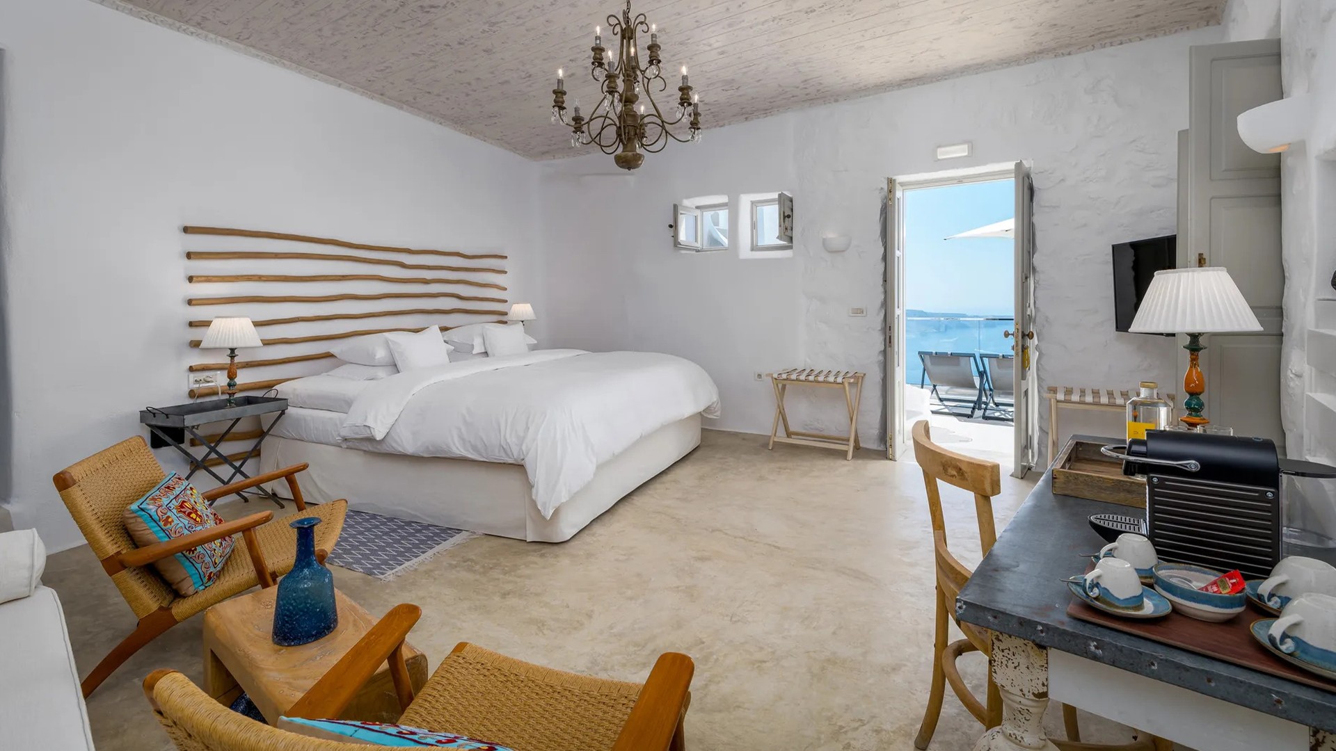 Secluded Santorini Oceanfront Resort Carved into the Cliffs with Panoramic Aegean Views