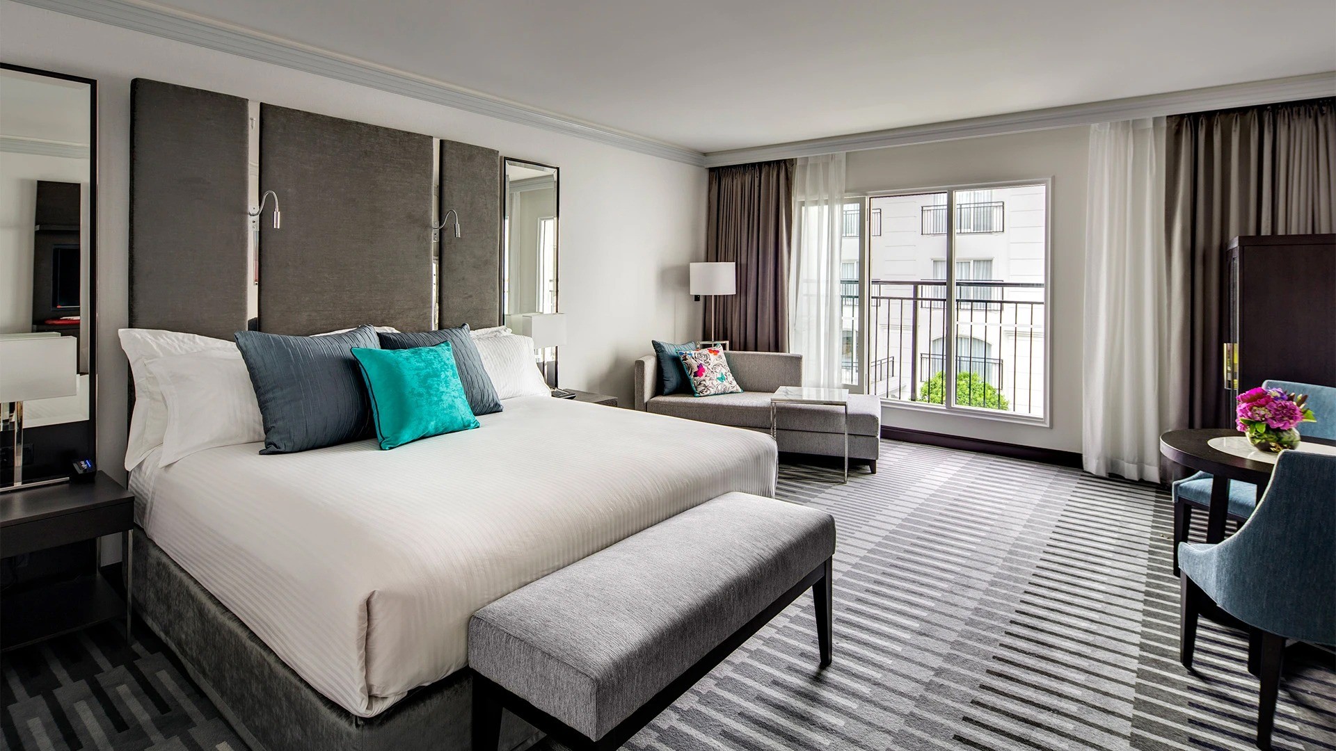 Feel right at home in this elegant room, featuring a marble ensuite bathroom with a luxe bathtub, contemporary design and views of the hotel's courtyard