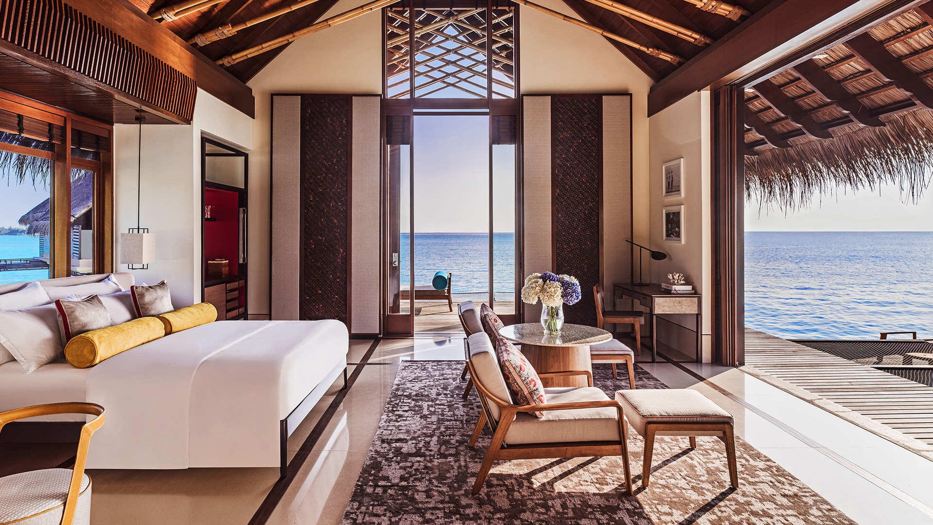 • There are four transfer options available to get you to the resort: a luxury boat transfer (up to 12 guests), a private luxury yacht transfer (up to 12 guests), a private speedboat transfer (up to 8 guests) or a private seaplane flight (up to 14 guests).
