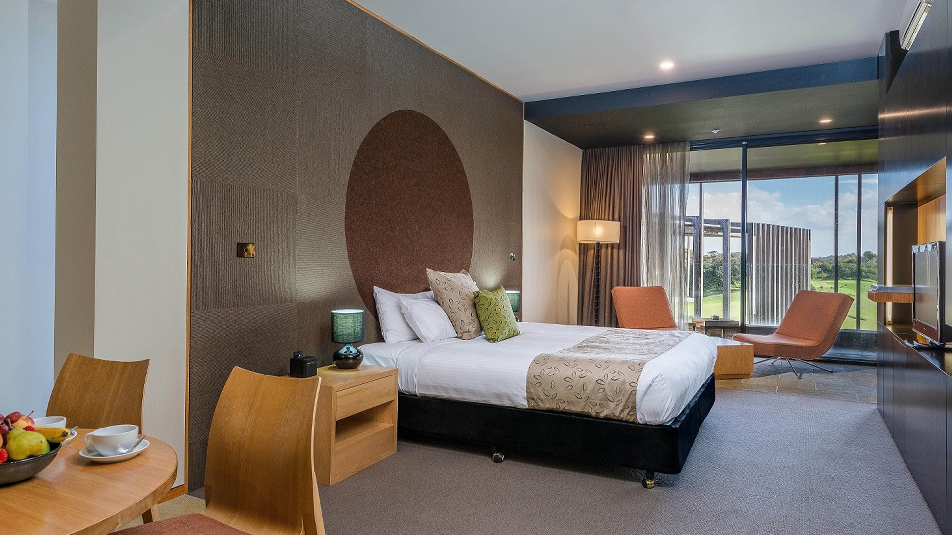 Embrace coastal serenity at Peppers Moonah Links Resort, a refined retreat nestled among the rolling greens and rugged ocean landscapes of the Mornington Peninsula. Set at the gateway to two championship golf courses and just moments from the famed Peninsula Hot Springs, this sophisticated escape pairs contemporary comfort with sweeping views. Spend sun-drenched days exploring nearby cellar doors, dramatic clifftop walks and pristine beaches, before returning to the calm of your private balcony overlooking the manicured greens.