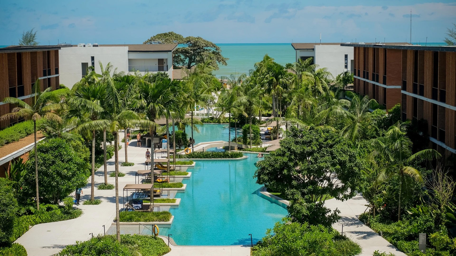 Little ones can race through the twin-looped waterslide or make friends at the onsite Kids’ Club while parents sip on a refreshing cocktail at Tharn Pool Bar.