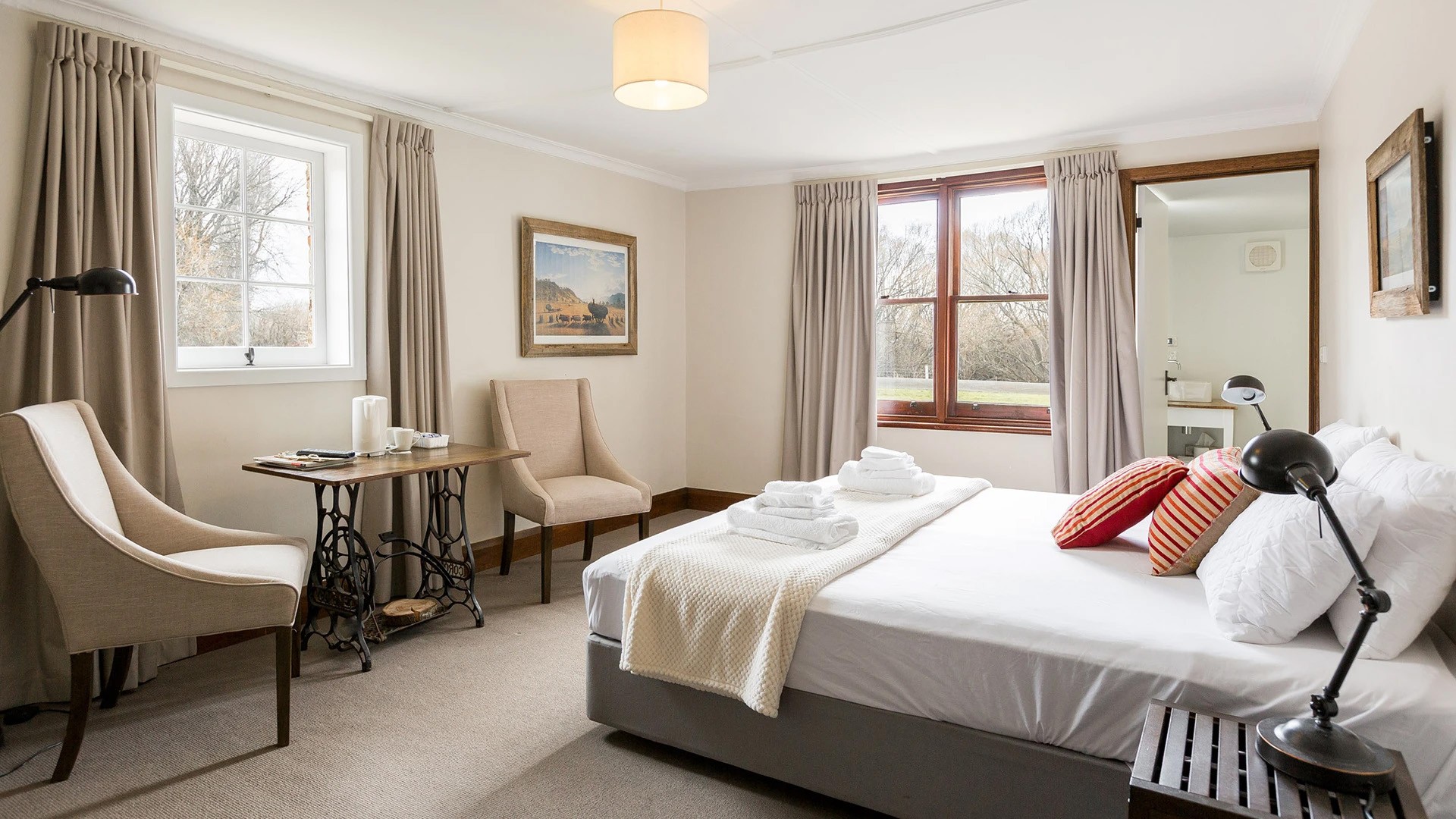 Ratho Farm is nestled in Tasmania’s serene Central Highlands, just outside the historic village of Bothwell. With a stay here, you’ll be surrounded by nature, but also within easy reach of some of the country’s best distilleries, cheesemakers and local producers. The property is an approximately 60-minute drive north of Hobart and Hobart Airport (HBA). Airport transfers are not included in your package; please plan accordingly.