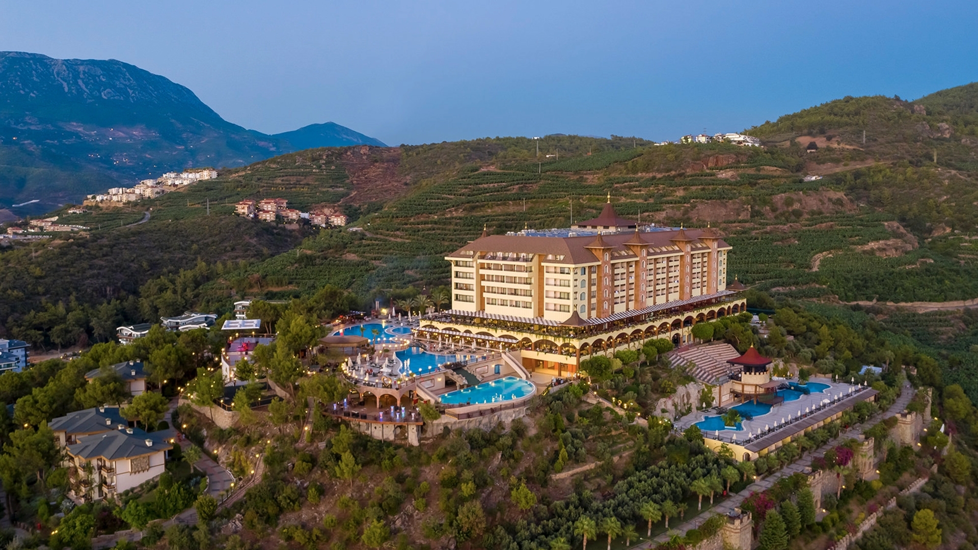 Utopia World is located in the idyllic Turkish Riviera, with its clifftop vantage point offering breathtaking views of the Mediterranean Sea. The resort is a 20-minute drive from Alanya, and 40 minutes from the historic Alanya Castle. The hotel is located approximately a two-hour drive from Antalya International Airport (AYT).