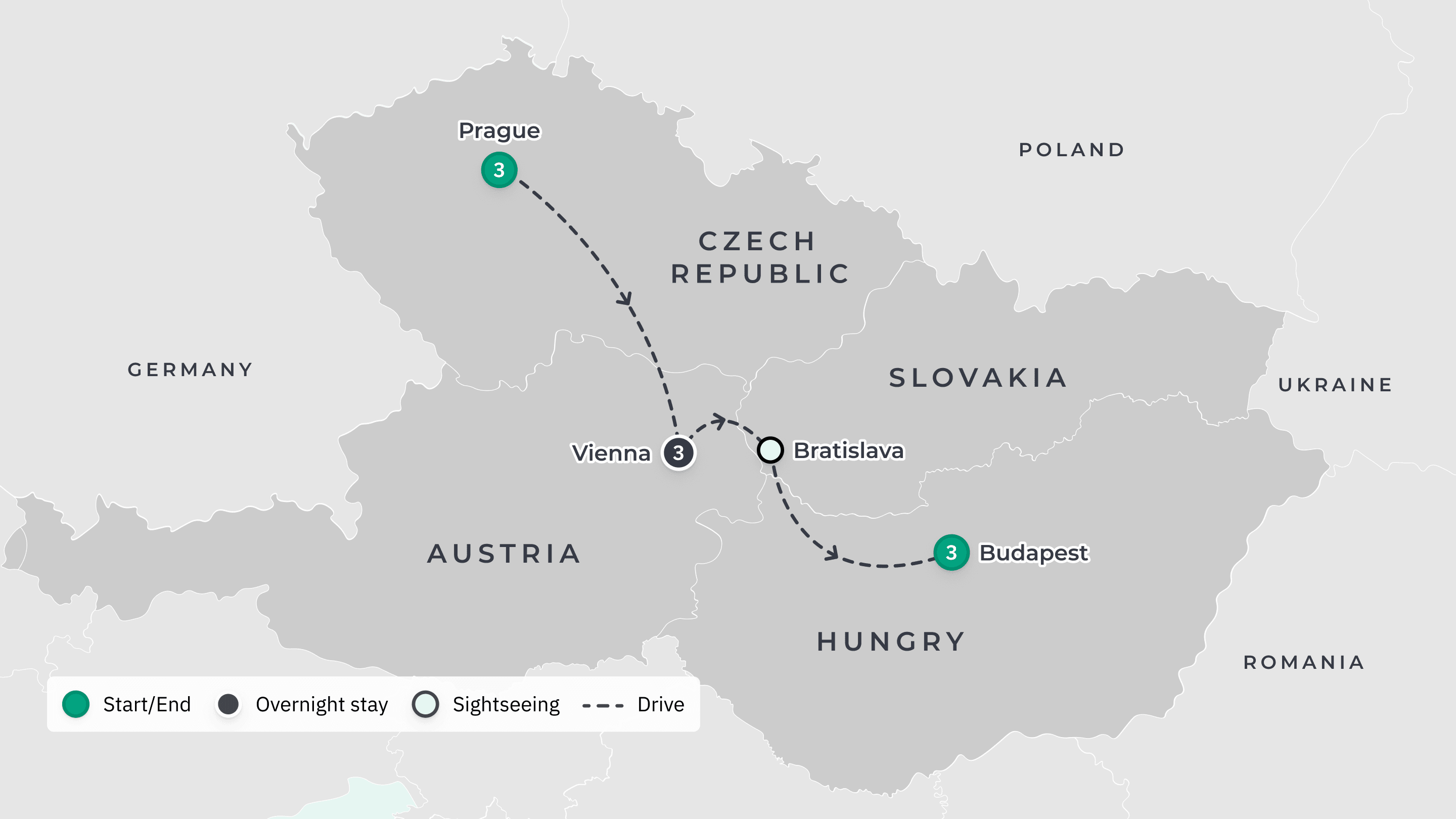 Your tour begins at your Vienna accommodation and ends at your Budapest accommodation.