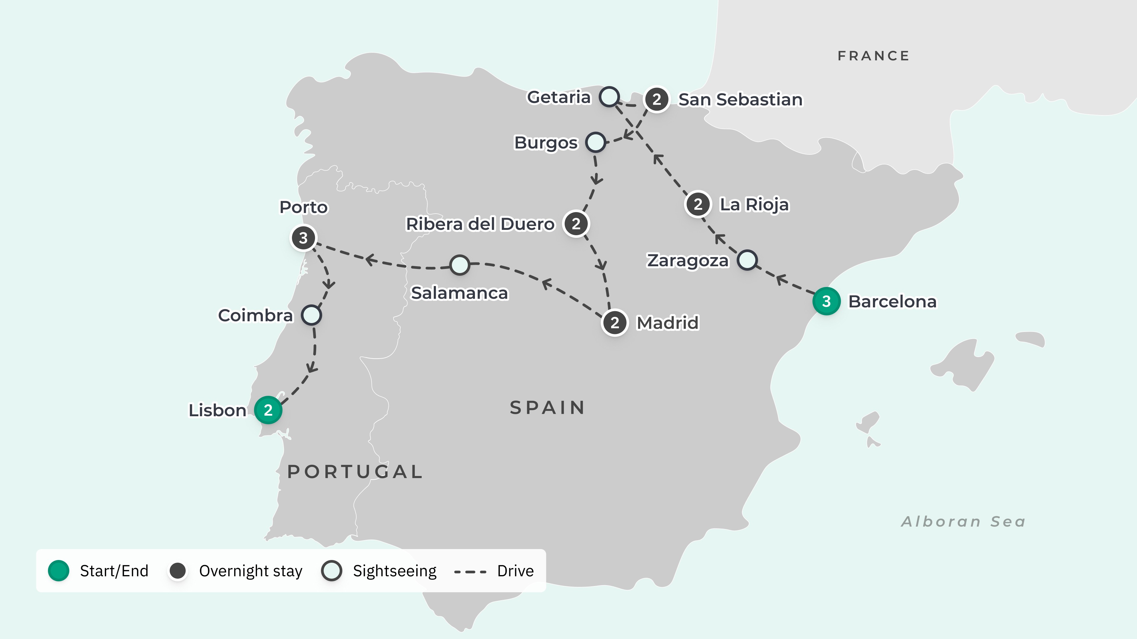 Your tour begins at Josep Tarradellas Barcelona-El Prat Airport (BCN) and ends at Humberto Delgado Airport (LIS) with return airport transfers.
